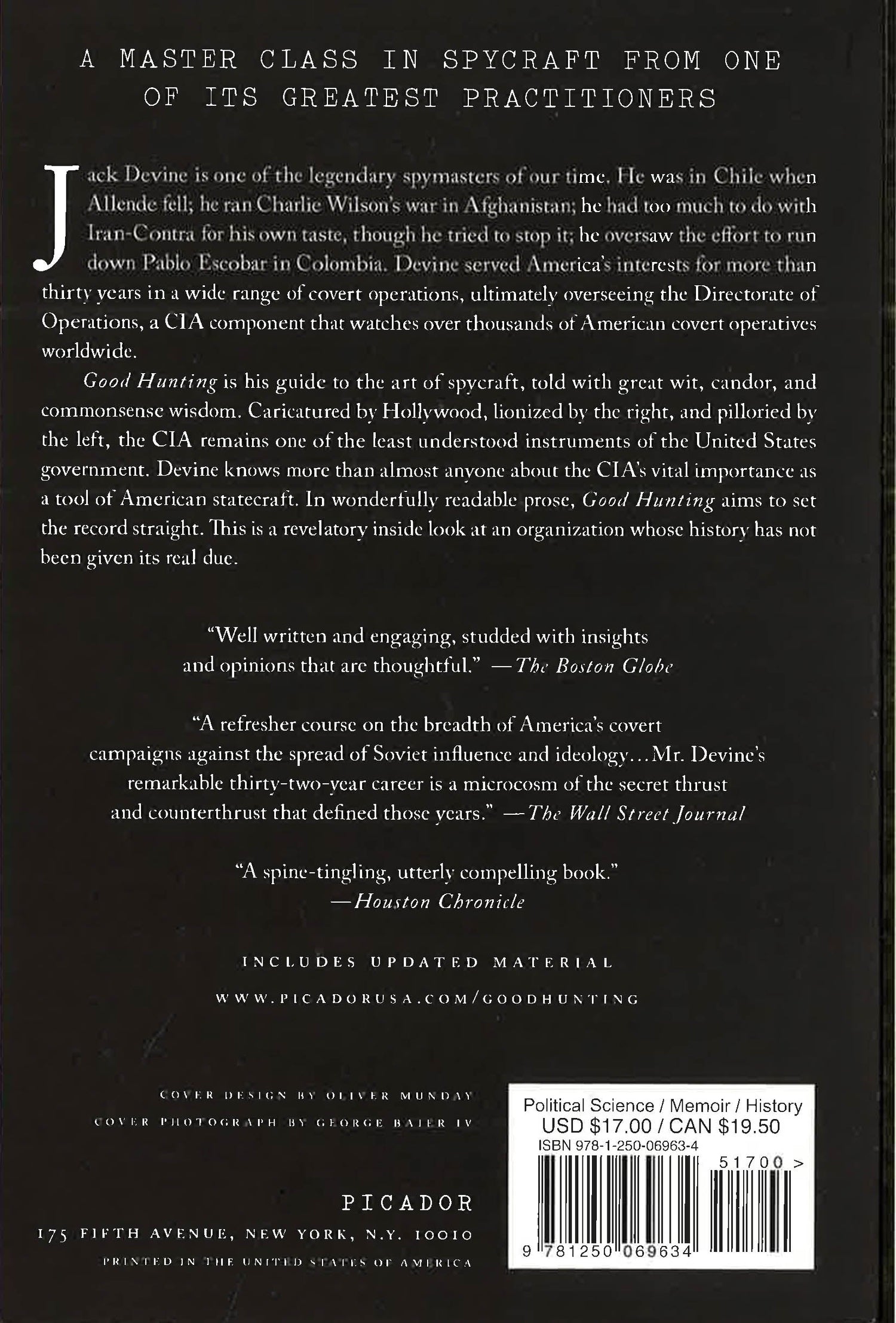 Good Hunting: An American Spymaster's Story is the spellbinding memoir of Devine's time in the Central Intelligence Agency, where he served for more than thirty years, rising to become the acting deputy director of operations, responsible for all of the CIA's spying operations. This is a story of intrigue and high-stakes maneuvering, all the more gripping when the fate of our geopolitical order hangs in the balance. But this book also sounds a warning to our nation's decision-makers: covert operations, not costly and devastating full-scale interventions, are the best safeguard of America's interests worldwide.