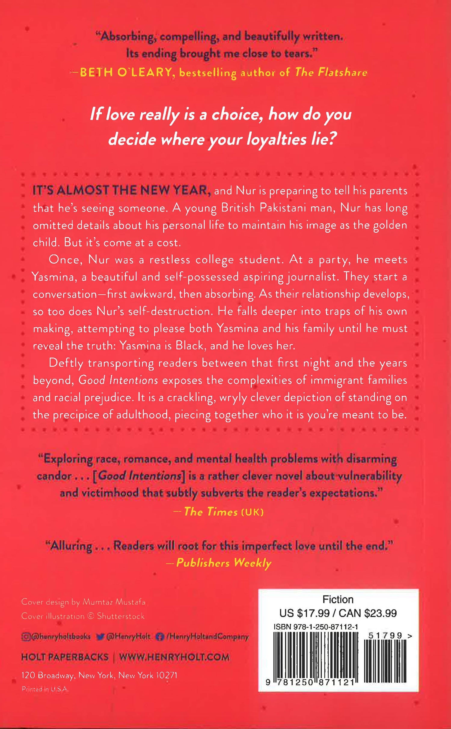 Deftly transporting readers between that first night and the years beyond, Kasim Ali's Good Intentions exposes with unblinking authenticity the complexities of immigrant families and racial prejudice. It is a crackling, wryly clever depiction of standing on the precipice of adulthood, piecing together who it is you're meant to be.