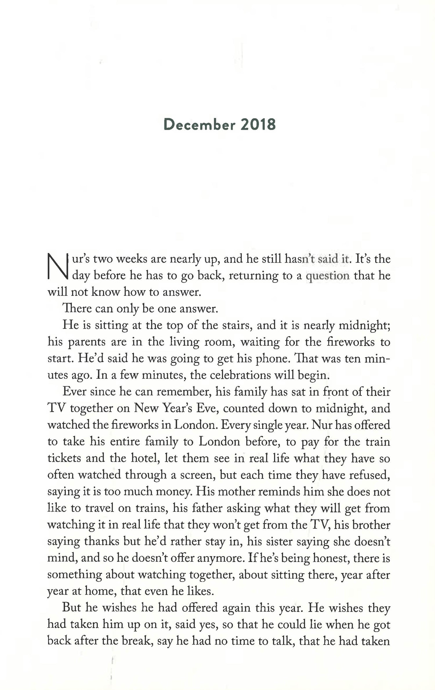 It's the countdown to the New Year, and Nur is steeling himself to tell his parents that he's seeing someone. A young British Pakistani man, Nur has spent years omitting details about his personal life to maintain his image as the golden child. And it's come at a cost.