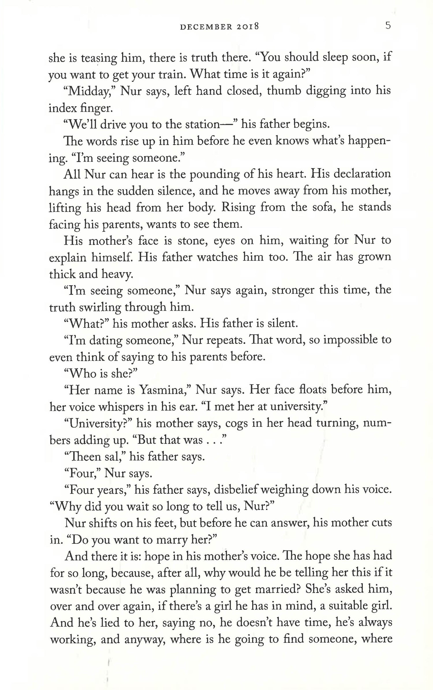 Once, Nur was a restless college student, struggling to fit in. At a party, he meets Yasmina, a beautiful and self-possessed aspiring journalist. They start a conversation--first awkward, then absorbing. And as their relationship develops, so too does Nur's self-destruction. He falls deeper into traps of his own making, attempting to please both Yasmina and his family until he must finally reveal the truth: Yasmina is Black, and he loves her.