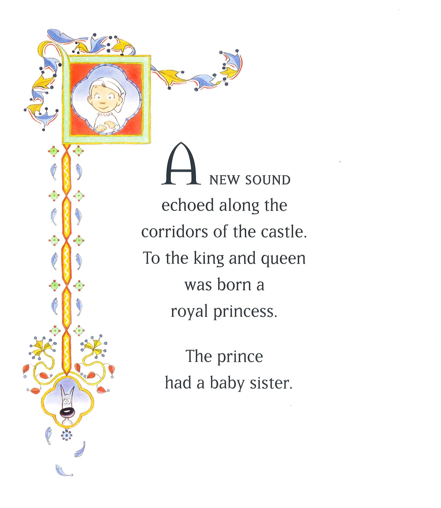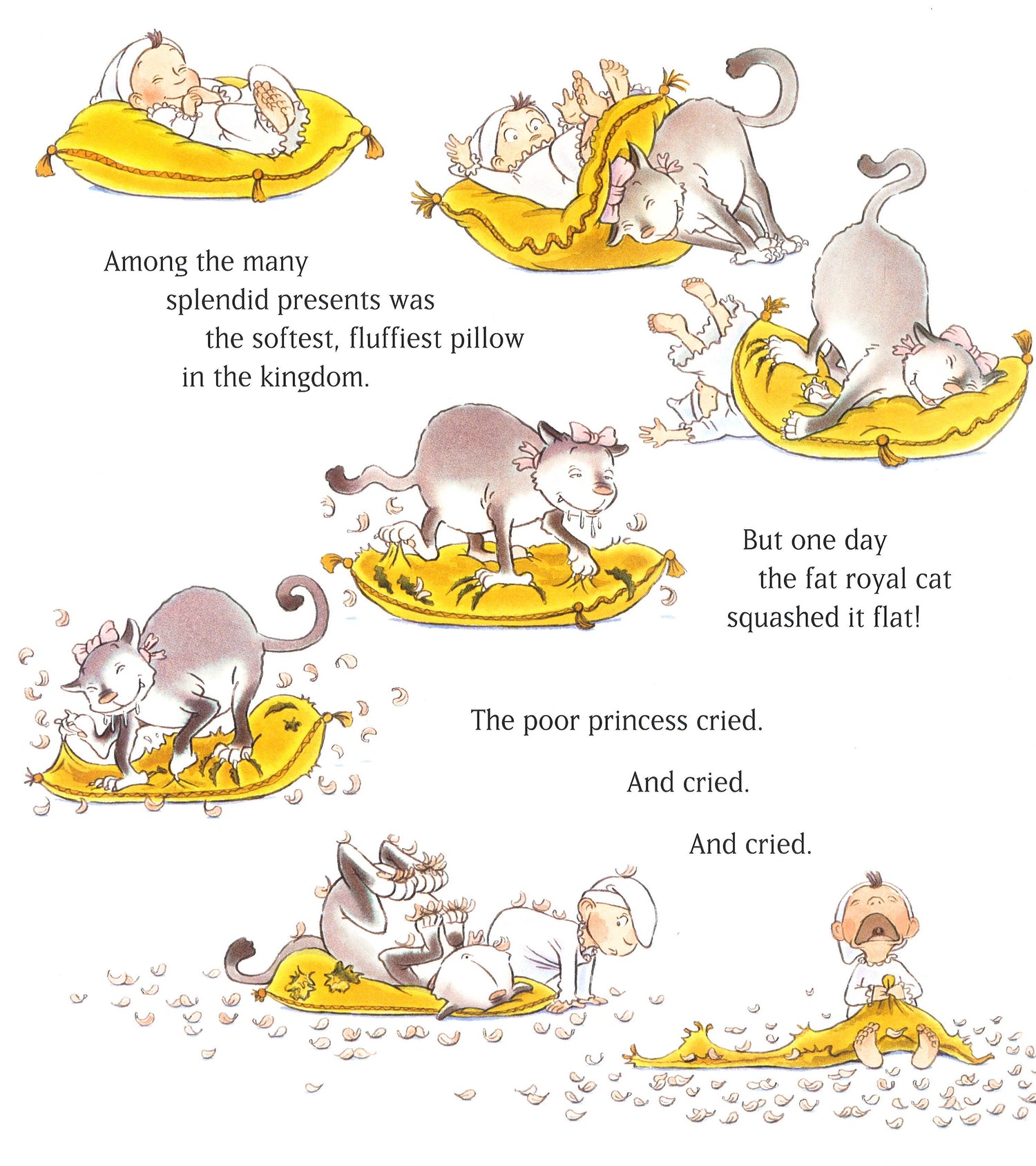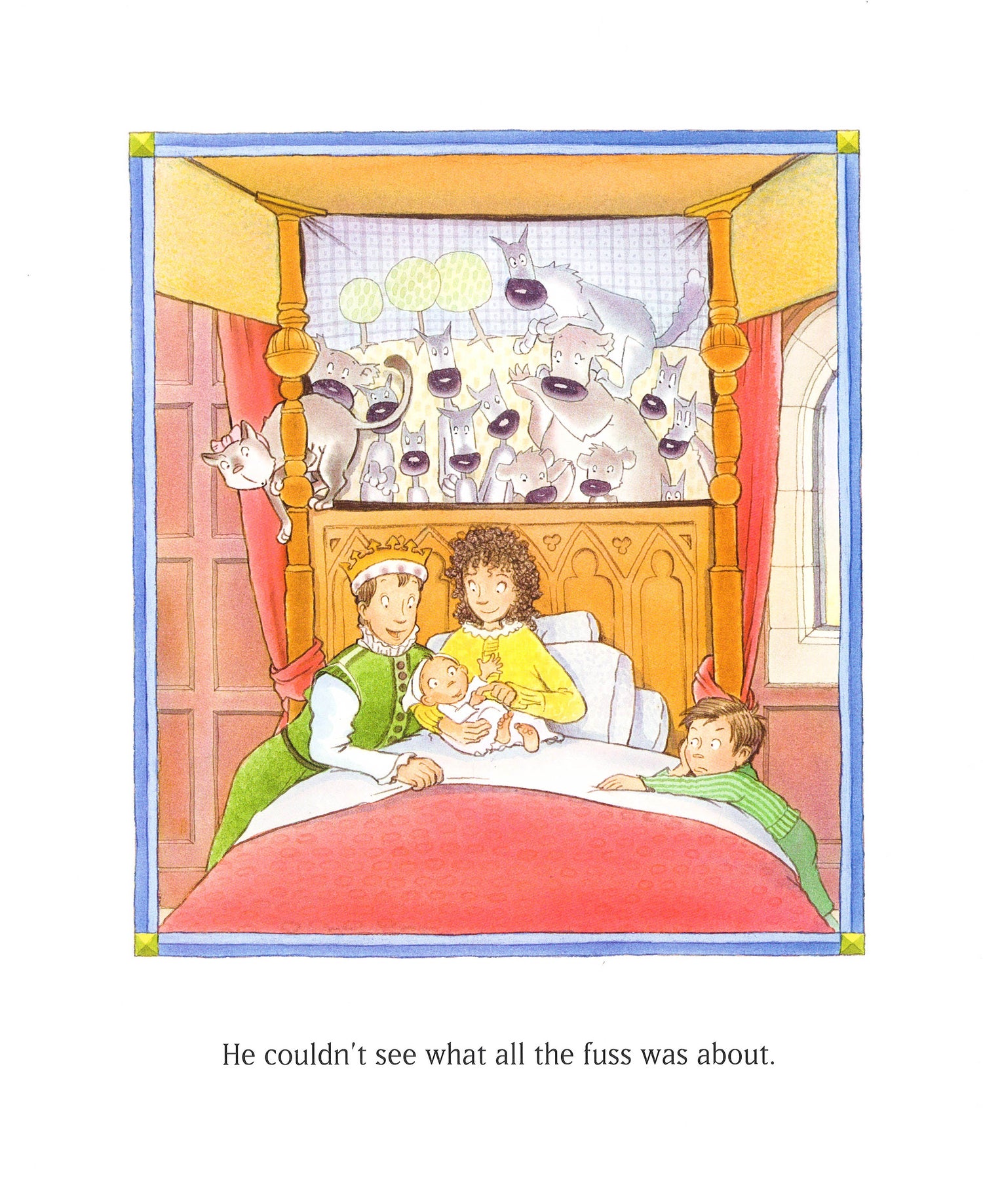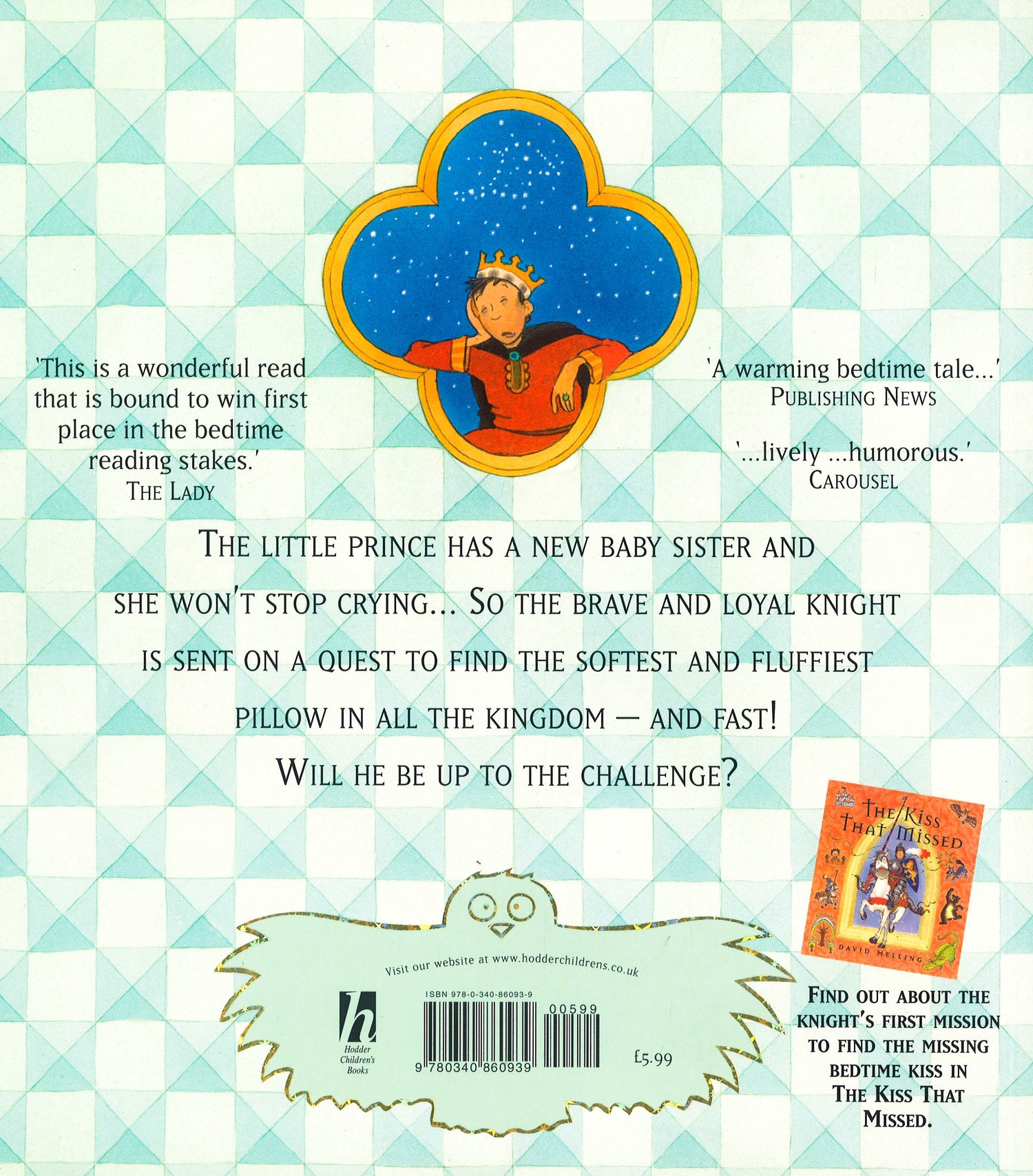 A baby princess has just been born to the royal family, but her elder brother the little prince can't understand what all the fuss is about. On one unlucky day the fat royal cat squashes the baby's soft pillow, and the princess can't sleep on it any more. She cries and cries, which prompts the king to send his brave and loyal knight out to the forest to find soft, new stuffing for the pillow. After many an adventure, the knight finally returns with fresh feathers for the princess's special pillow. Will it make her happy again? Will she finally stop crying and let the rest of the family get some sleep? It sounds like a good ideabut the princess isn't soothed. She continues to cry. Maybe, her brother the prince has a better way to make her stop crying. David Melling's newest delightful picture storybook features humorous illustrations done in the same attractive style that distinguishes three of his earlier favorites, "The Kiss That Missed, The Ghost Library, "and "The Tale of Jack Frost. "
