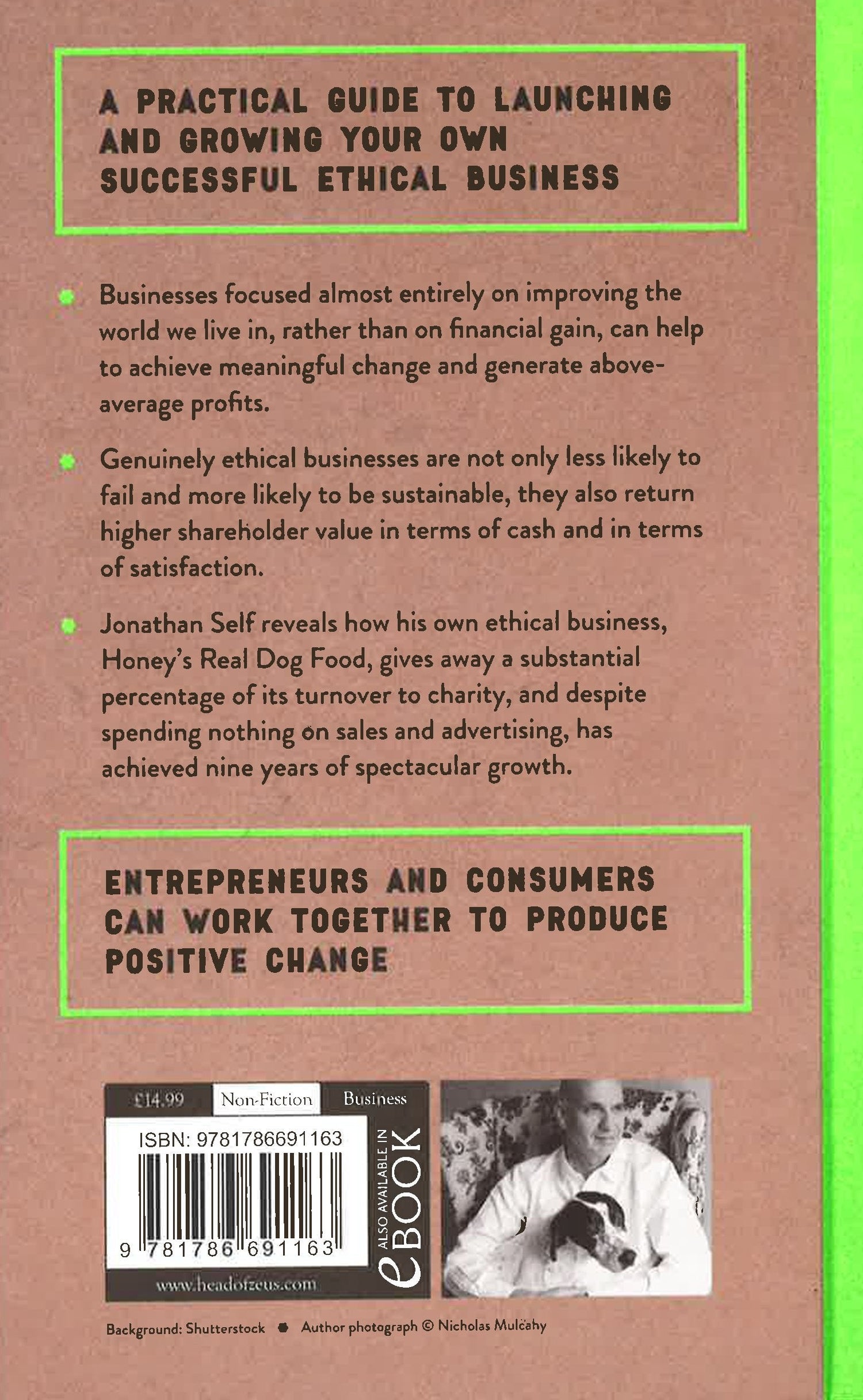 Ethical and socially responsible businesses have made a significant impact over the past decade, social entrepreneurs and others being drawn by the bigger profits and greater robustness that ethical businesses offer during times of economic downturn. And there is a public fascination for mould-breaking businesses that disrupt established models in particular sectors of the market. At the core of Jonathan Self's book is an account of the author's own experiences of an successful ethical business start-up - Honey's Real Dog Food, which makes raw dog food from organically sourced ingredients. This is a company that gives away a substantial percentage of its profits to charity, whose advertising budget is nil because all of its custom comes via word of mouth, which recruits staff at parties and whose staff choose which hours they wish to work.