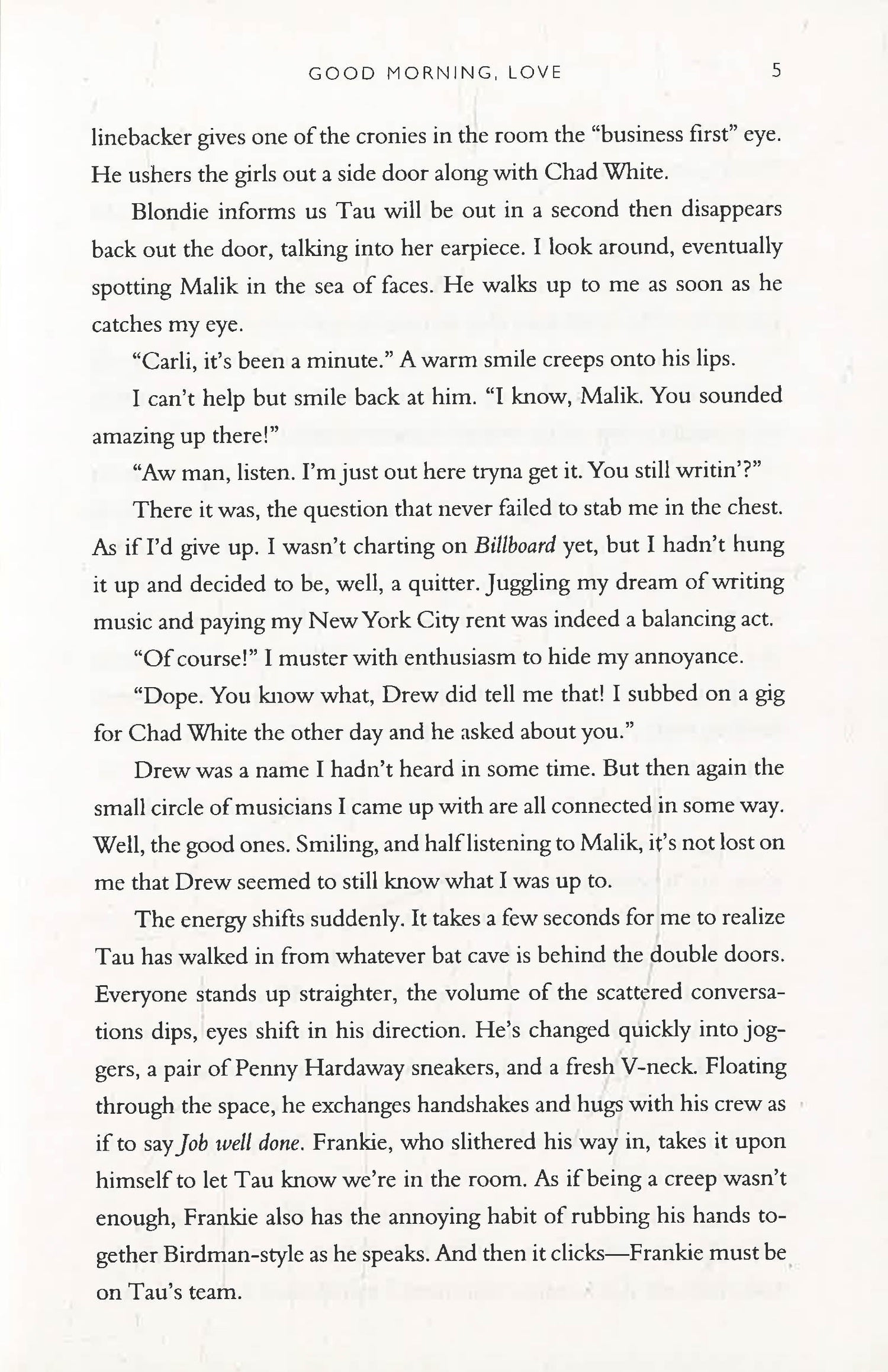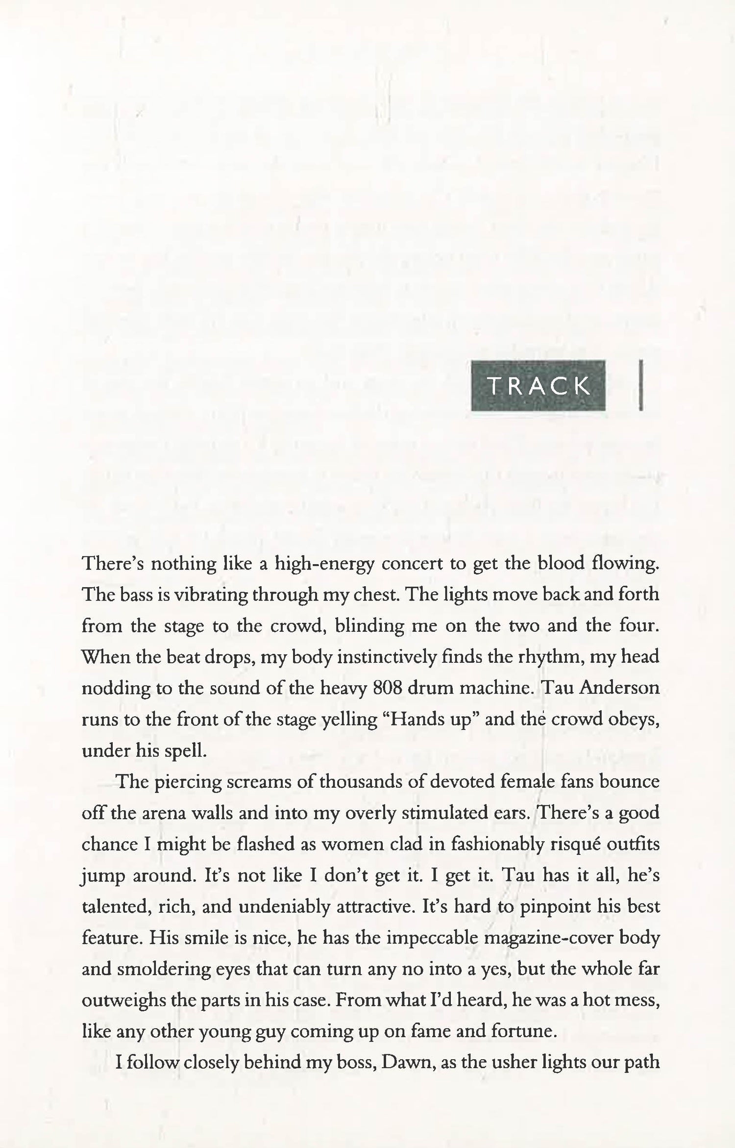 Carlisa “Carli” Henton is a musician and songwriter hoping to follow in her father’s musical footsteps. But, biding her time until she makes it big in the music industry, she works as a junior account manager at a big-name media company to cover her New York City rent. Carli meticulously balances her work with her musical endeavors as a songwriter—until a chance meeting with rising star Tau Anderson sends her calculated world into a frenzy. Their worlds collide and quickly blur the strict lines Carli has drawn between her business and her personal life, throwing Carli’s reputation—and her burgeoning songwriting career—into question.