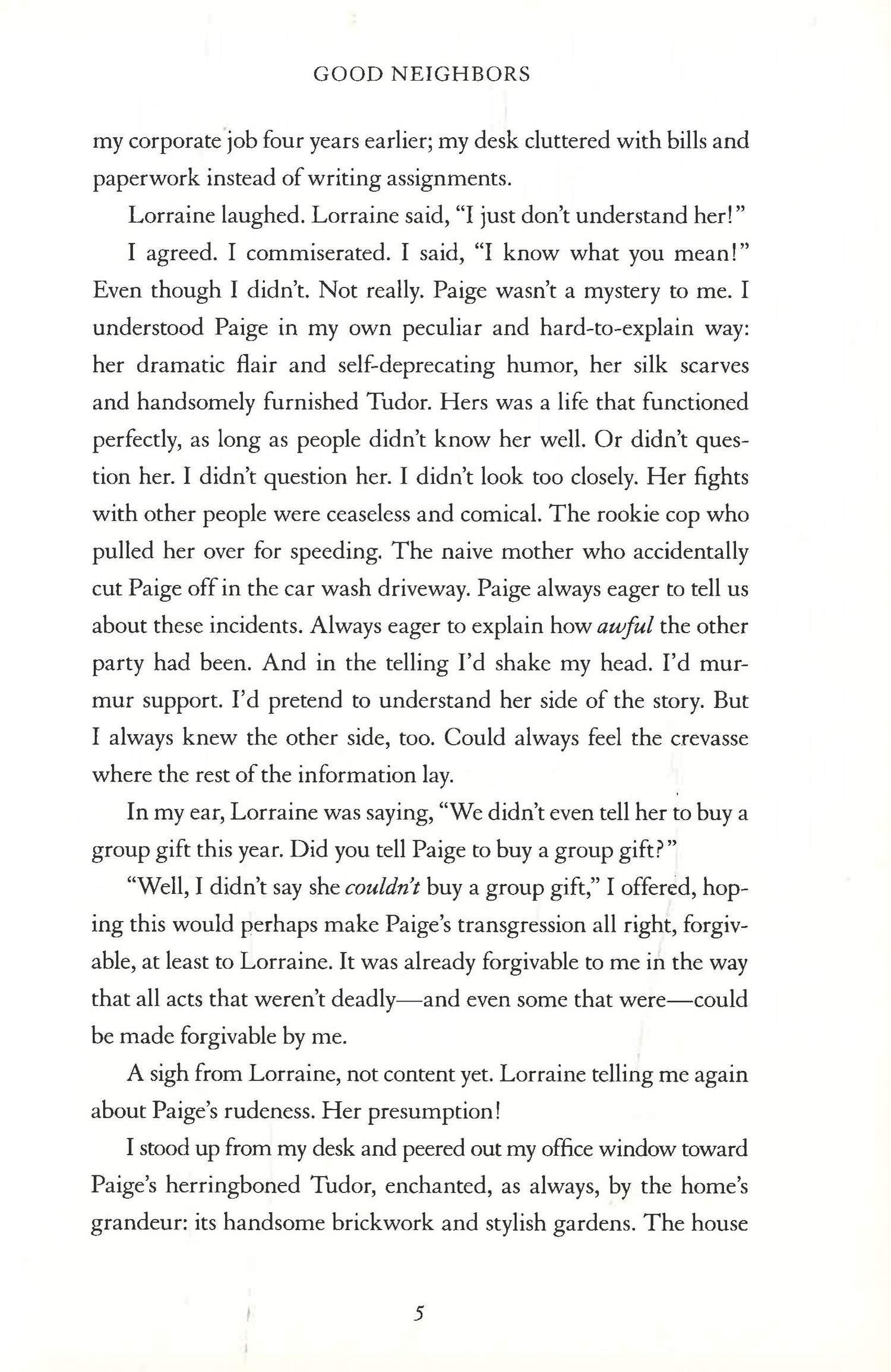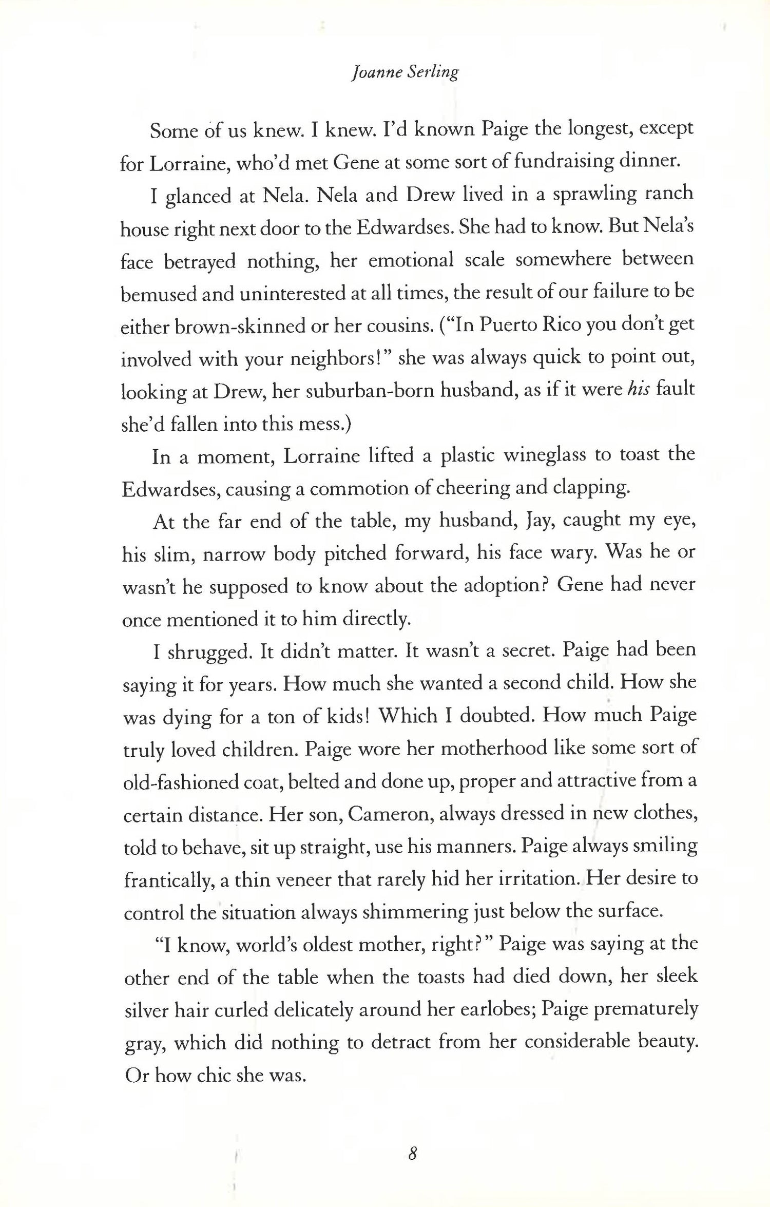 As the seams of the group friendship slowly unravel, neighbor Nicole Westerhof finds herself drawn further into the life of the adopted girl, forcing Nicole to re-examine the deceptive nature of her own family ties, and her complicity in the events unfolding around her.