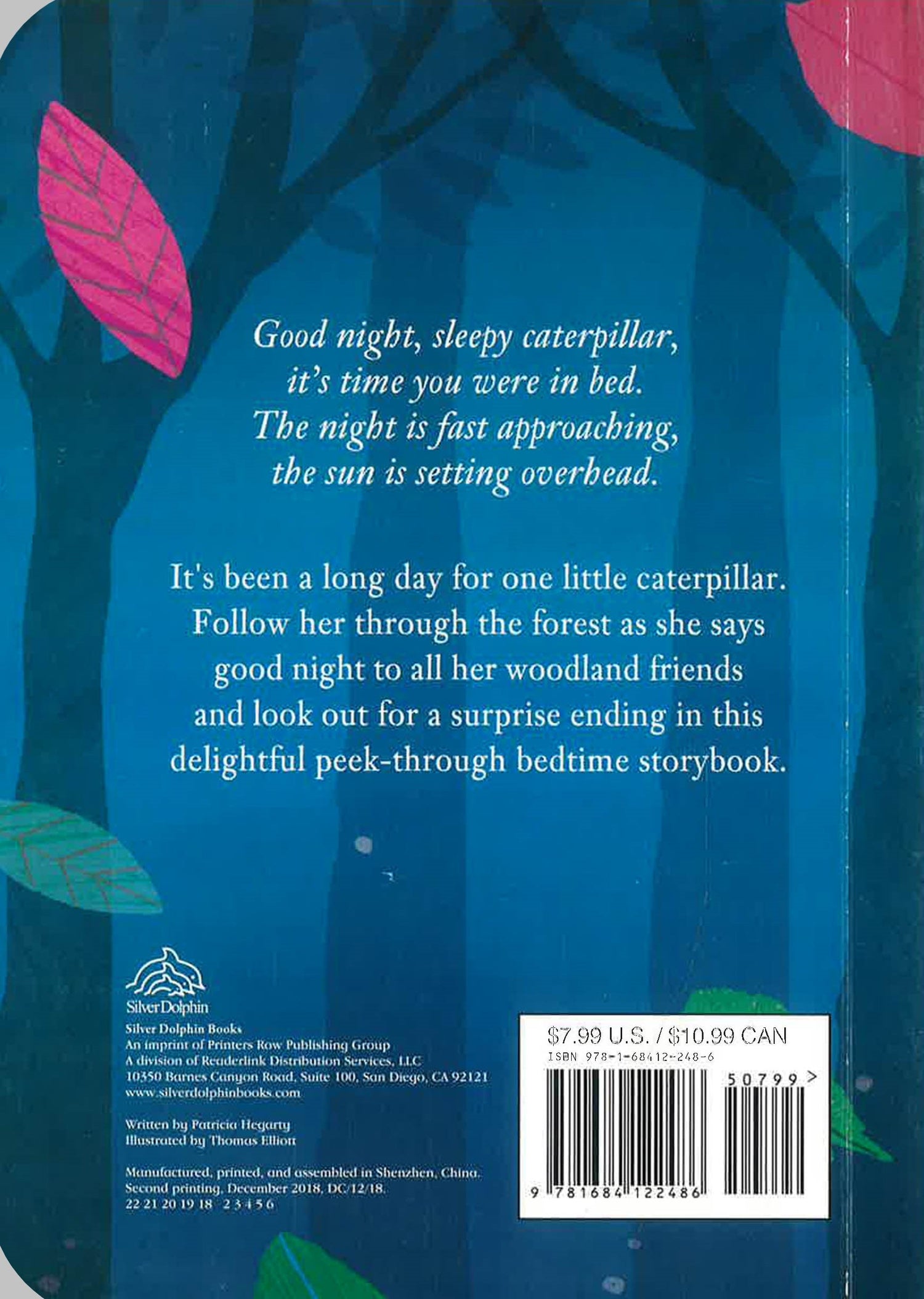 It’s been a long day for one little caterpillar. Follow her through the forest as she says good night to all of her woodland friends in this delightful peek-through bedtime storybook. With colorful illustrations and die-cuts on every page, this book will keep little hands busy before they have sweet dreams!