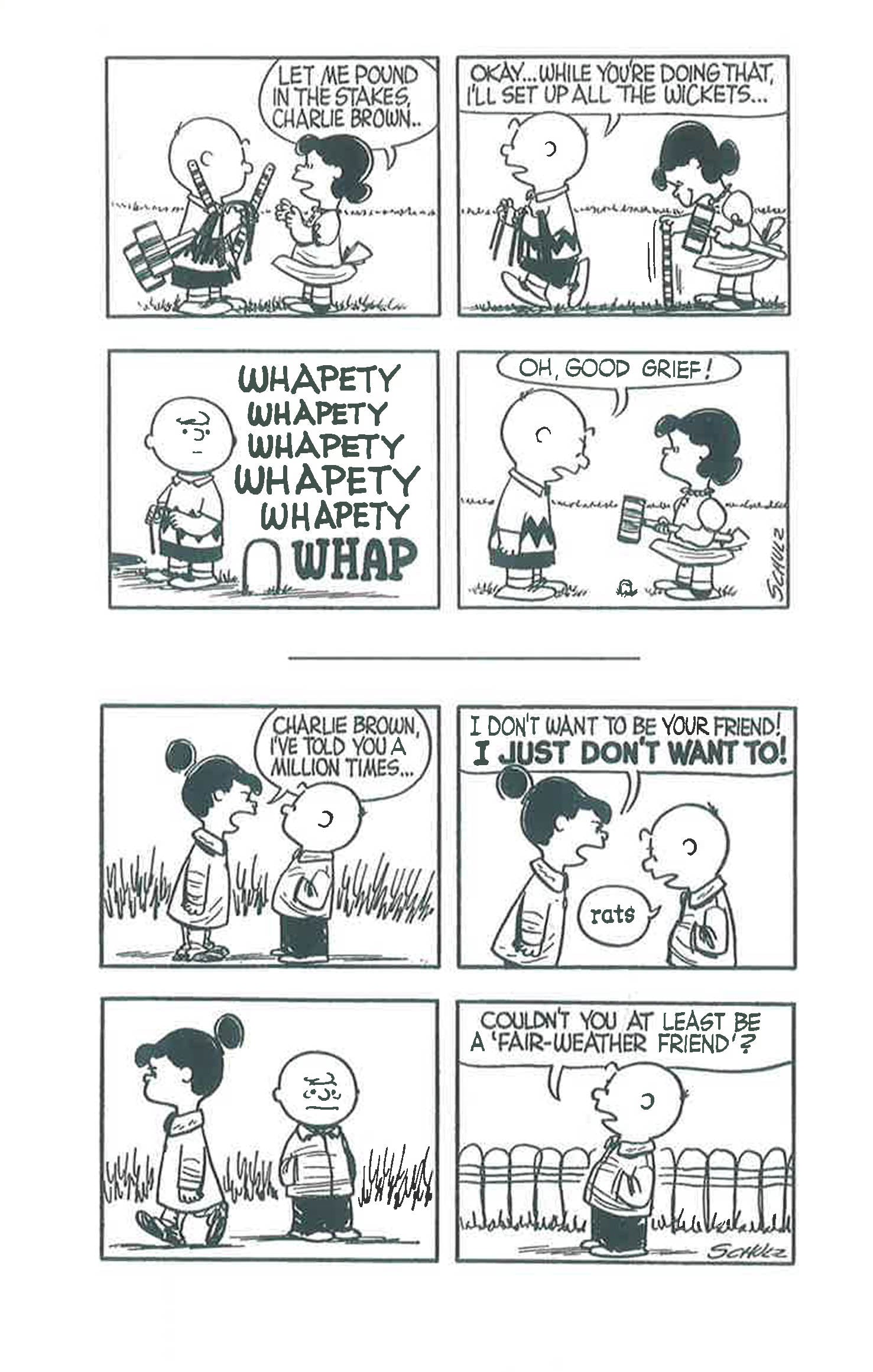 This collection of 248 daily Peanuts newspaper strips that appeared between 1955 - 1957 features all your favourite characters, including Charlie Brown, Snoopy, Violet, Patty, Shermy, Lucy, Schroeder, Pig-Pen, Linus and Beethoven. This book is a facsimile edition of the fourth Peanuts collection originally published back in 1957 by the Clarke, Irwin & Company, Ltd of Toronto, Canada.