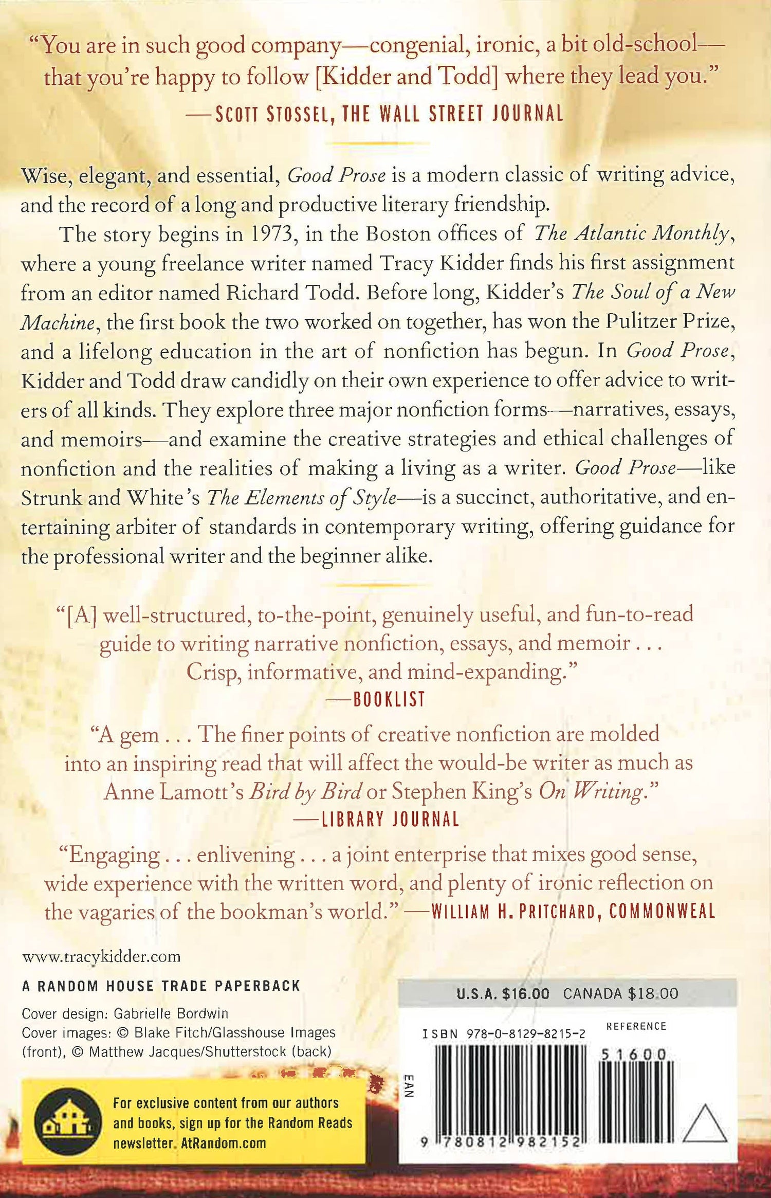 Good Prose is an inspiring book about writing--about the creation of good prose--and the record of a warm and productive literary friendship. The story begins in 1973, in the offices of The Atlantic Monthly, in Boston, where a young freelance writer named Tracy Kidder came looking for an assignment. Richard Todd was the editor who encouraged him. From that article grew a lifelong association. Before long, Kidder's The Soul of a New Machine, the first book the two worked on together, had won the Pulitzer Prize. It was a heady moment, but for Kidder and Todd it was only the beginning of an education in the art of nonfiction.