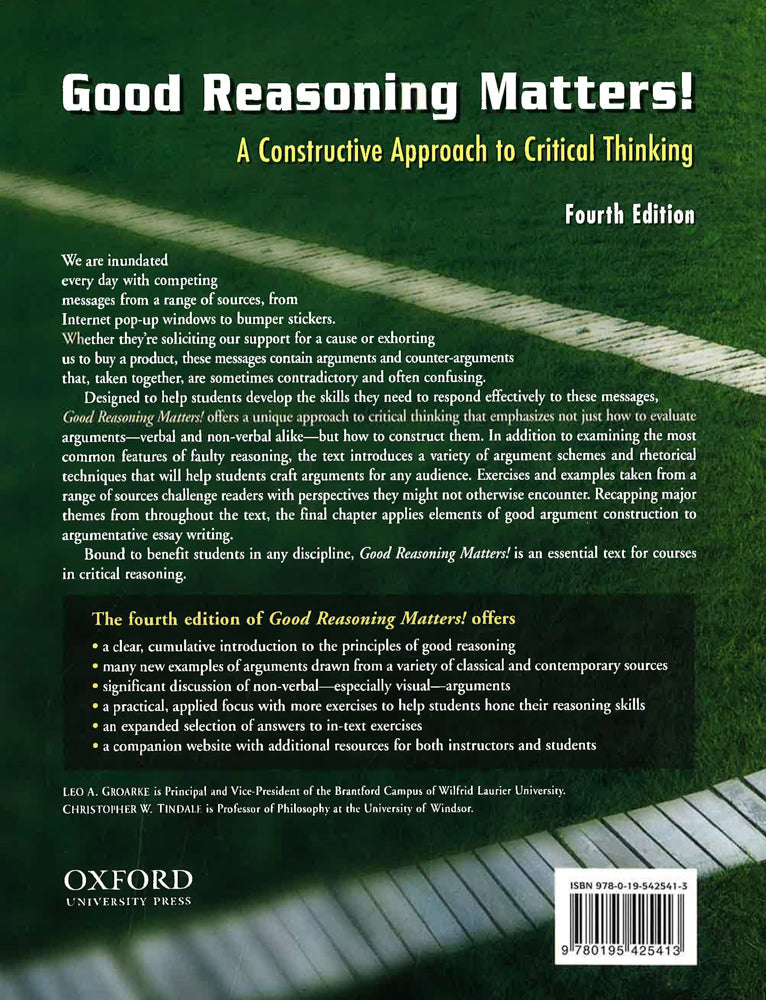 Good Reasoning Matters uses an innovative approach to critical thinking by teaching students how to argue effectively rather than just point out the short comings of ineffective arguments.