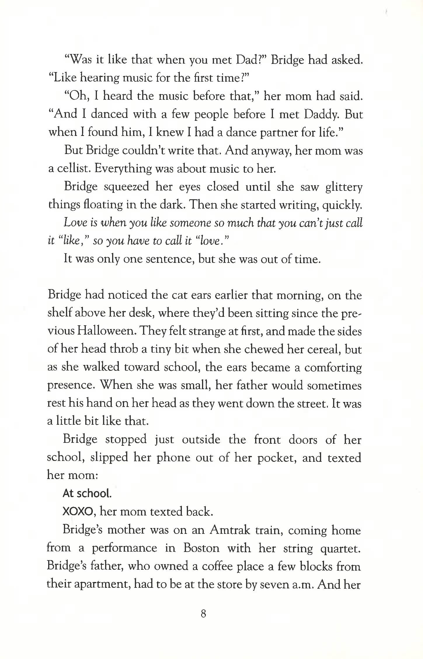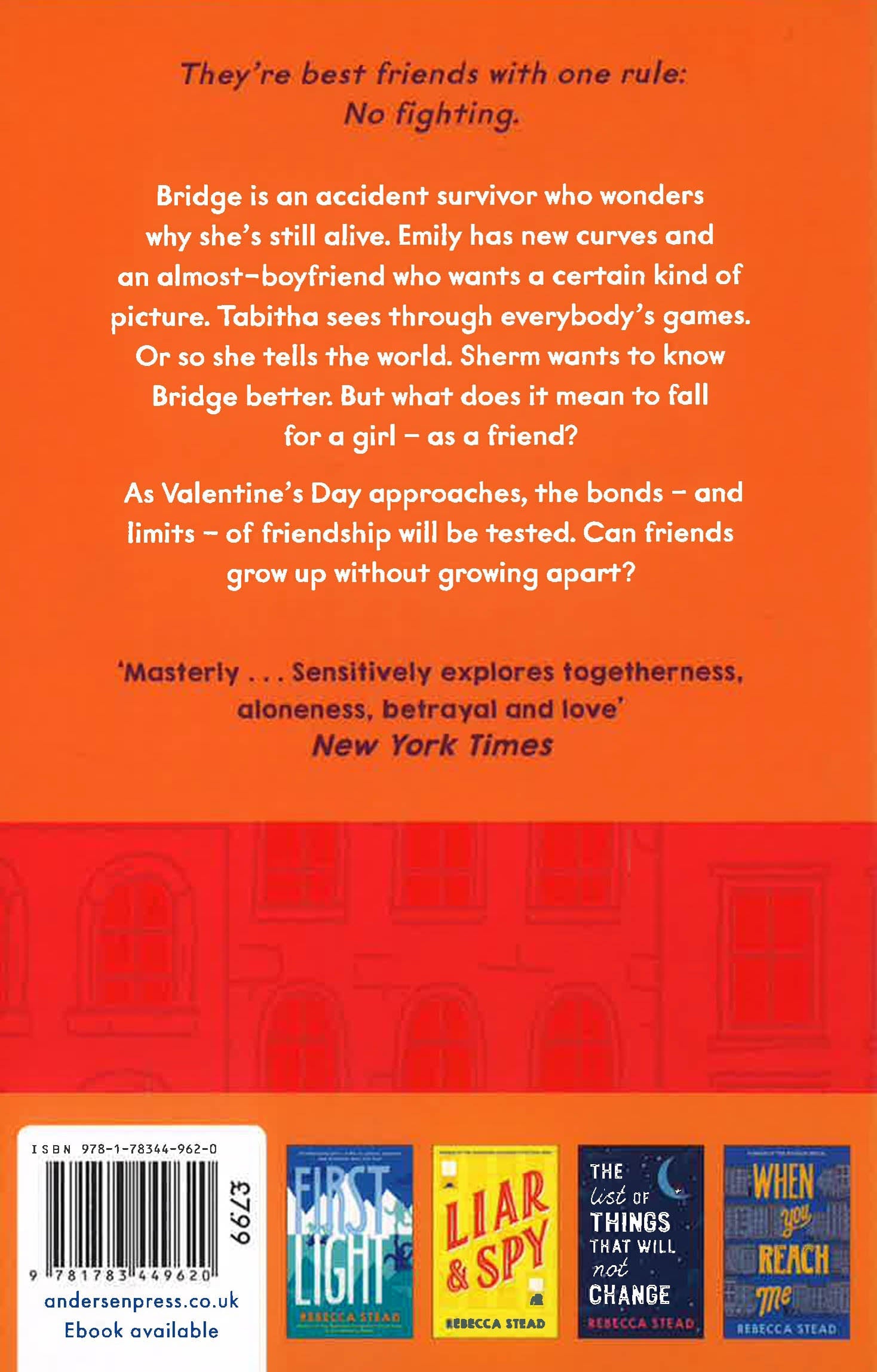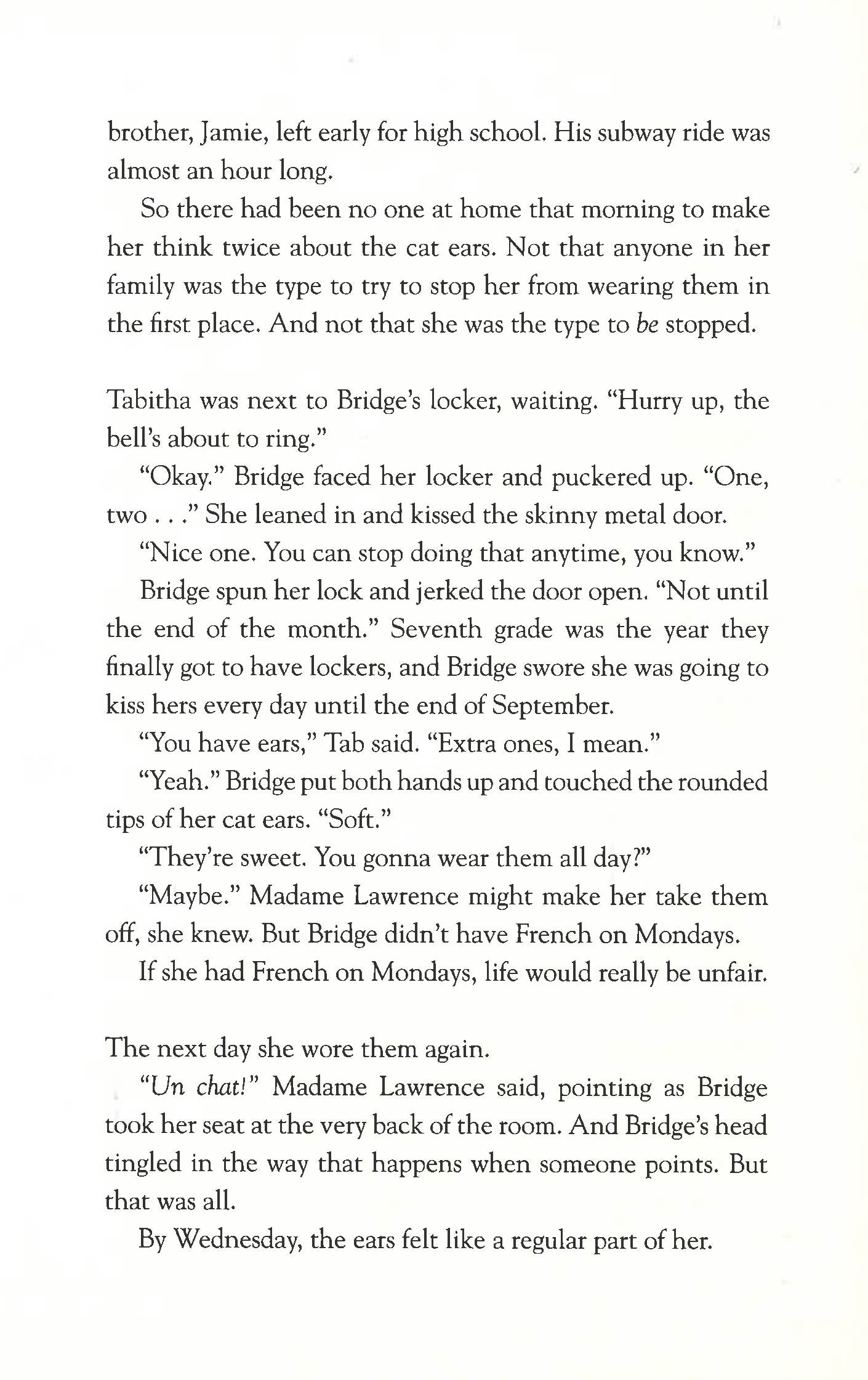 Bridge has always been a bit of an oddball, but since she recovered from a serious accident, she's found fitting in with her friends increasingly hard. Tab and Em are getting cooler and they don't get why she insists on wearing novelty cat ears every day. Bridge just thinks they look good. It's getting harder to keep their promise of no fights, especially when they start keeping secrets from each other. Sherm wants to get to know Bridge better. But he's hiding the anger he feels at his grandfather for walking out. And then there is another girl, who is struggling with an altogether more serious set of friendship troubles... Told from interlinked points of view, this is a bittersweet story about the trials of friendship and growing up.