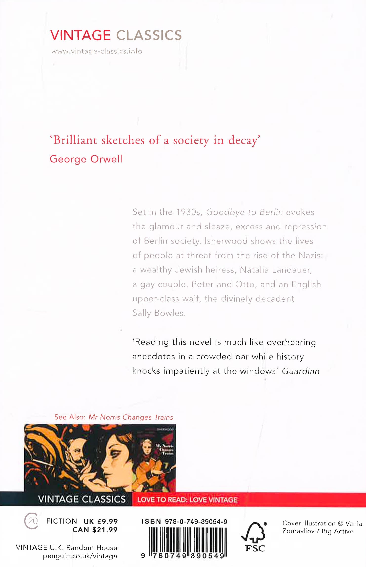 Discover the dark and decadent novella that inspired Cabaret. Set in the 1930s, Goodbye to Berlin evokes the glamour and sleaze, excess and repression of Berlin society. Isherwood shows the lives of people under threat from the rise of the Nazis: a wealthy Jewish heiress, Natalia Landauer, a gay couple, Peter and Otto, and an English upper-class waif, the divinely self-indulgent Sally Bowles. 'Brilliant sketches of a society in decay' George Orwell 'Isherwood is a master of the emotionally cathartic moment, funny and perspicacious' Evening Standard