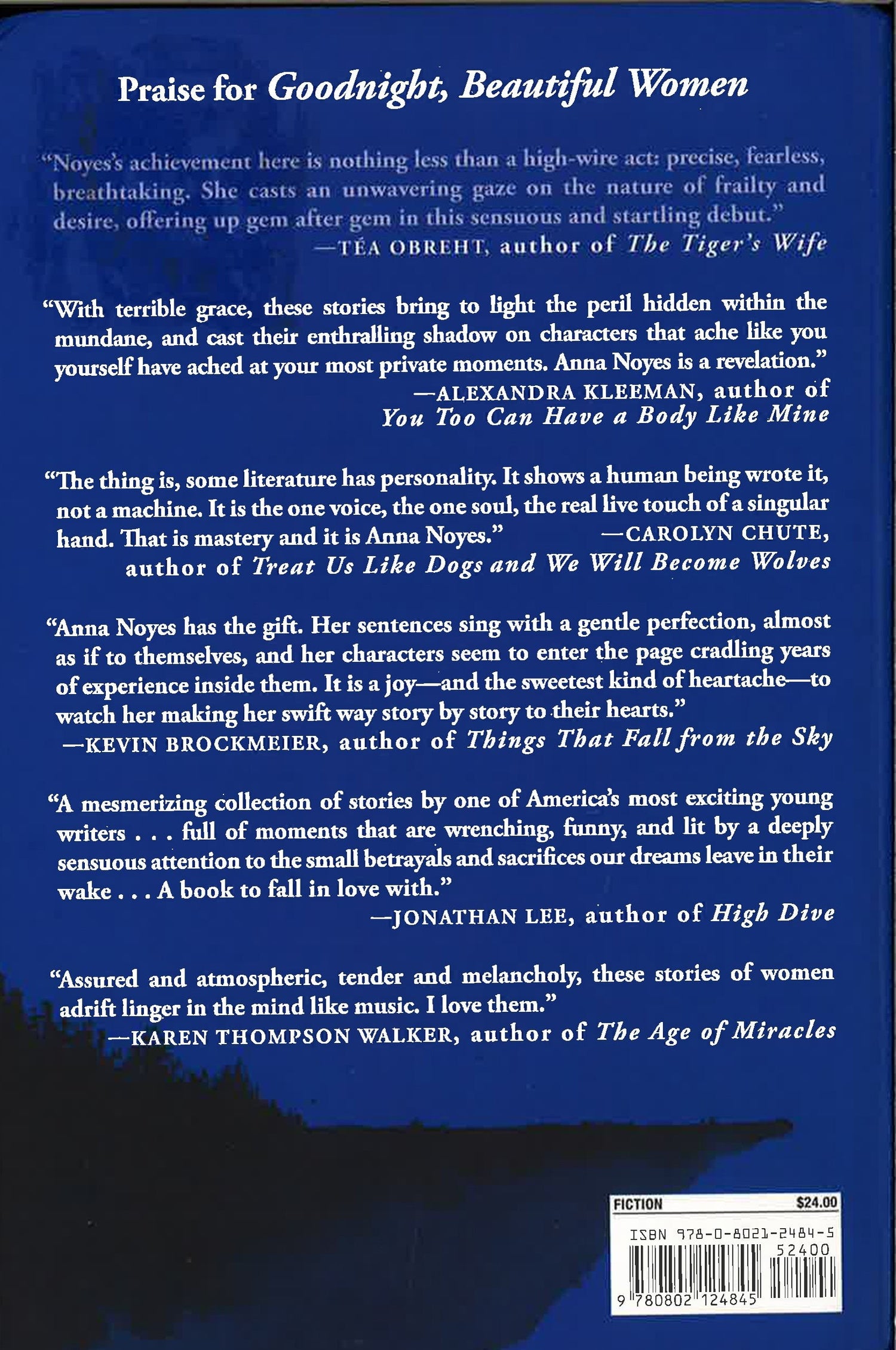 "This is an extraordinary book of stories. Many of the characters are anchored to coastal Maine, but a particular quality of wildness animates nearly all of them. The stories are energetic, often mysterious, and beautifully written, and they will stay in your memory long after you finish the book."--Charles Baxter Moving along the Maine Coast and beyond, the interconnected stories in Goodnight, Beautiful Women bring us into the sultry, mysterious inner lives of New England women and girls as they navigate the dangers and struggles of their outer worlds. With novelistic breadth and a quicksilver emotional intelligence, Noyes explores the ruptures and vicissitudes of growing up and growing old, and shines a light on our most uncomfortable impulses while masterfully charting the depths of our murky desires. A woman watches her husband throw one by one their earthly possessions into the local quarry, before vanishing himself; two girls from very different social classes find themselves deep in the throes of a punishing affair; a motherless teenager is sexually awakened in the aftermath of a local trauma; and a woman's guilt from a childhood lie about her intellectually disabled cousin reverberates into her married years. Dark and brilliant, rhythmic and lucid, Goodnight, Beautiful Women marks the arrival of a fearless and unique new young voice in American fiction.