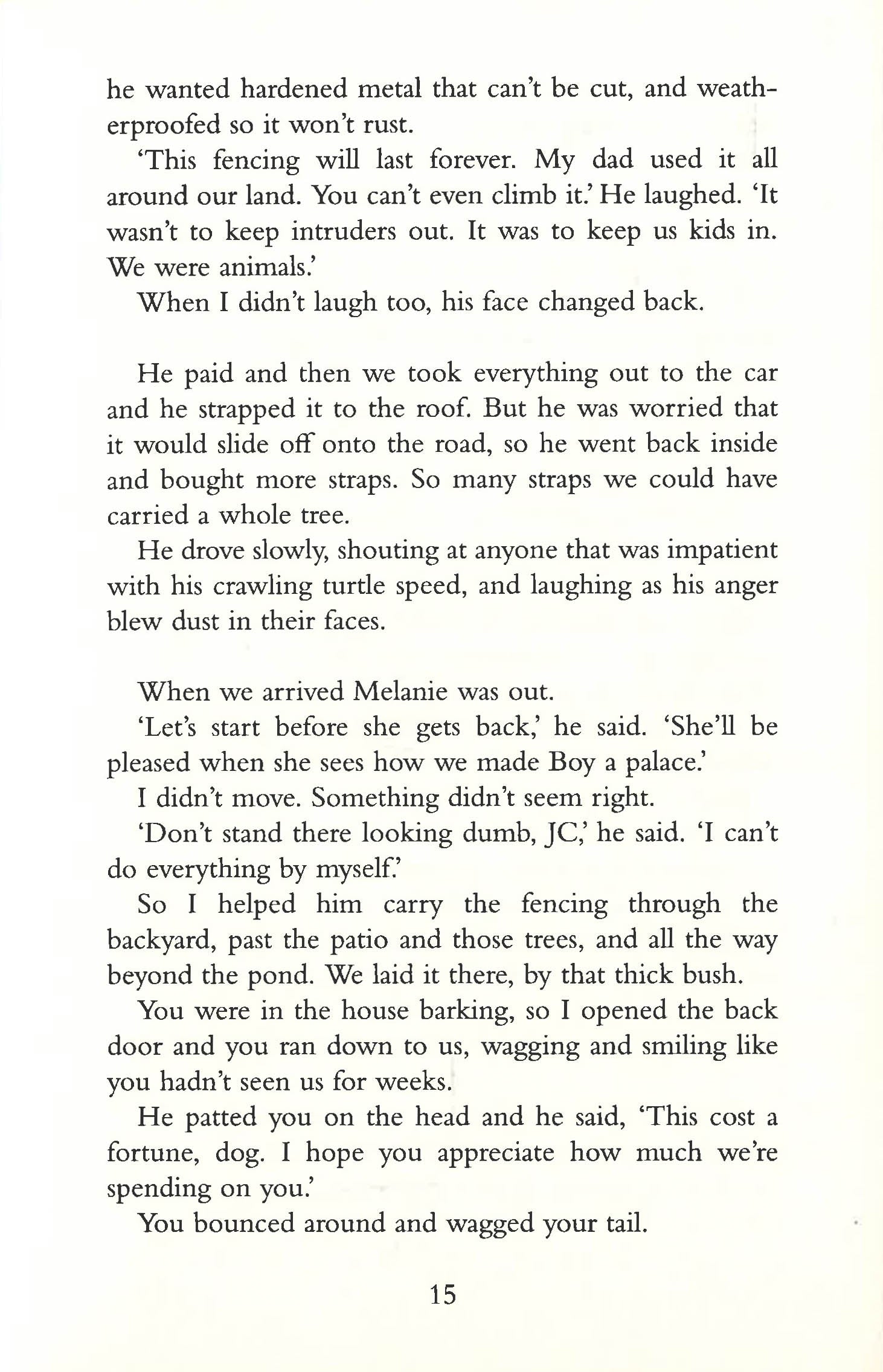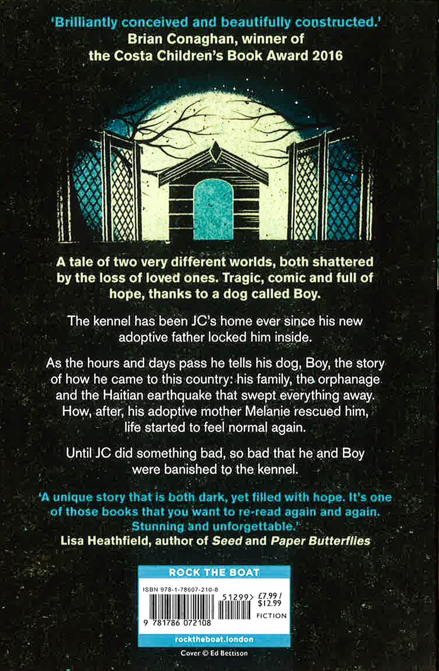 The kennel has been JC’s home ever since his new adoptive father locked him inside. For hours on end, JC sits and tells his dog Boy how he came to this country: his family, the orphanage and the Haitian earthquake that swept everything away.When his adoptive mother Melanie rescues him, life starts to feel normal again. Until JC does something bad, something that upset his new father so much that he and Boy are banished to the kennel. But as his new father gets sicker, JC realizes they have to find a way out. And so begins a stunning story of a boy, a dog and their journey to freedom.