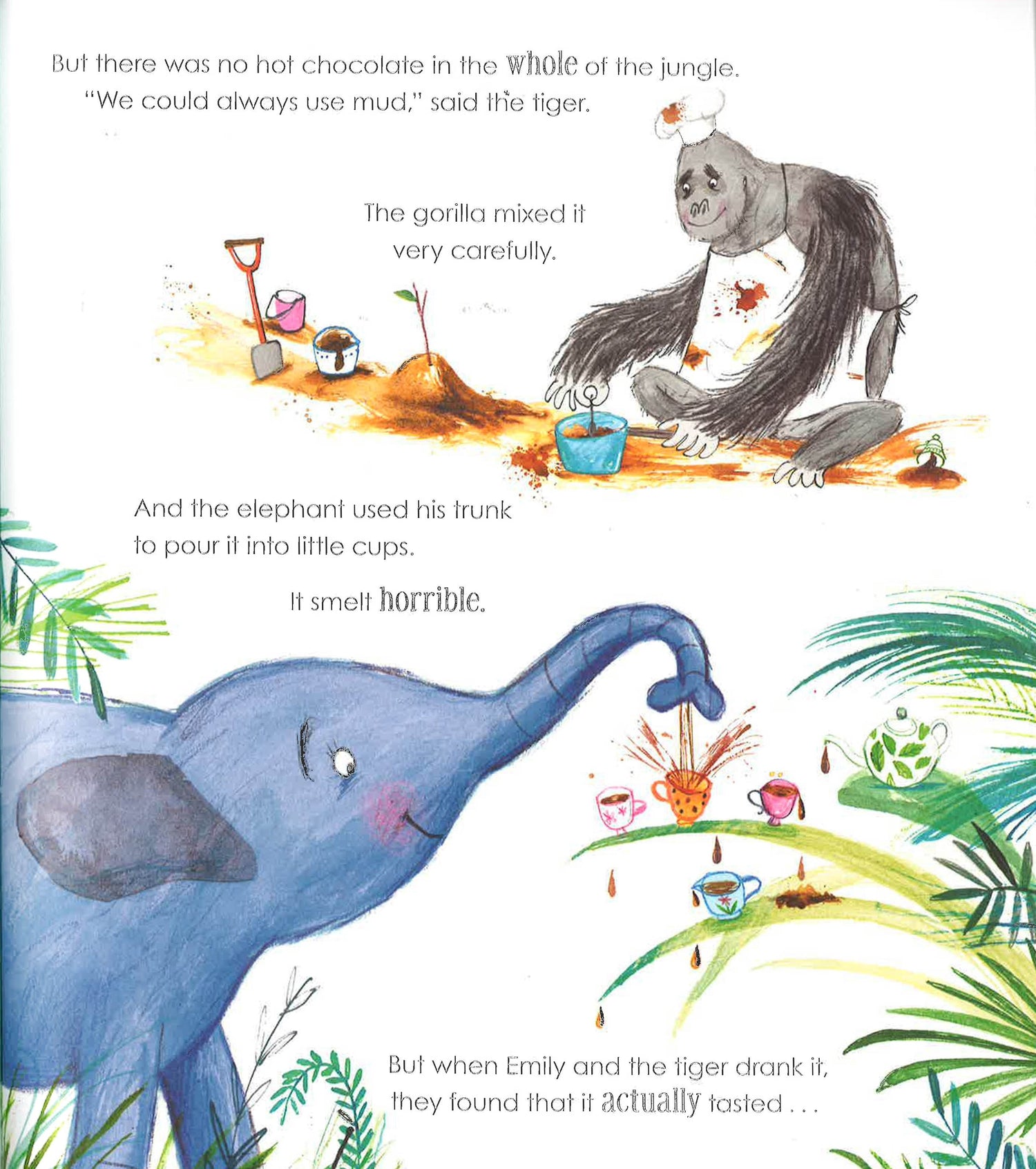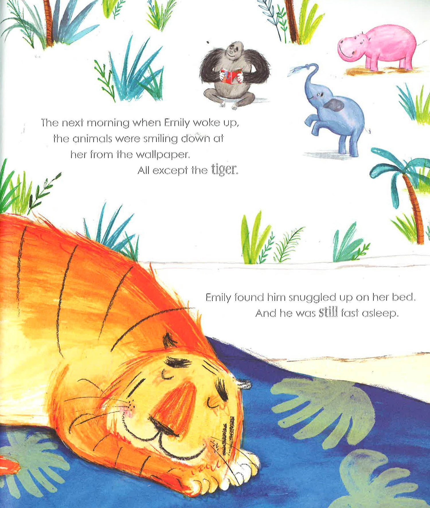 The animals in Emily's jungle wallpaper can't sleep, and they are bellowing and stomping and growling and keeping her awake! "Go to sleep!" shouts Emily. "We've tried and tried, but can't!" says the tiger. So Emily climbs into the wallpaper and shows the animals how to get ready for bed. Only baths and lullabies aren't quite the same in the jungle...!