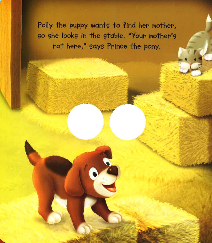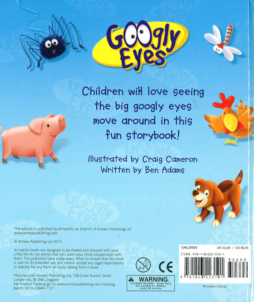 Children will love seeing the big googly eyes move around in this fun board storybook! Help Polly the puppy look round the farm and find her mother in this charming illustrated book. Is she in the stable with the horses? Is she in the sty with the pigs? Maybe in the field with the cows? Young children will love turning the pages and laughing at the fun googly eyes popping out of every scene, and the friendly animal characters will keep your child happy as you read together. The engaging story, printed on thick board pages, is sure to entertain children of all ages. This is a first reading book that is ideal for children aged 3-5 years. It features a lively story, brightly coloured pictures and moving eyes to keep small children entertained. Other titles in the "Googly Eyes" series are "The Pig with the Curliest Tail", "Chico Plays Hide and Seek" and "Freddie the Fish, Star of the Show".