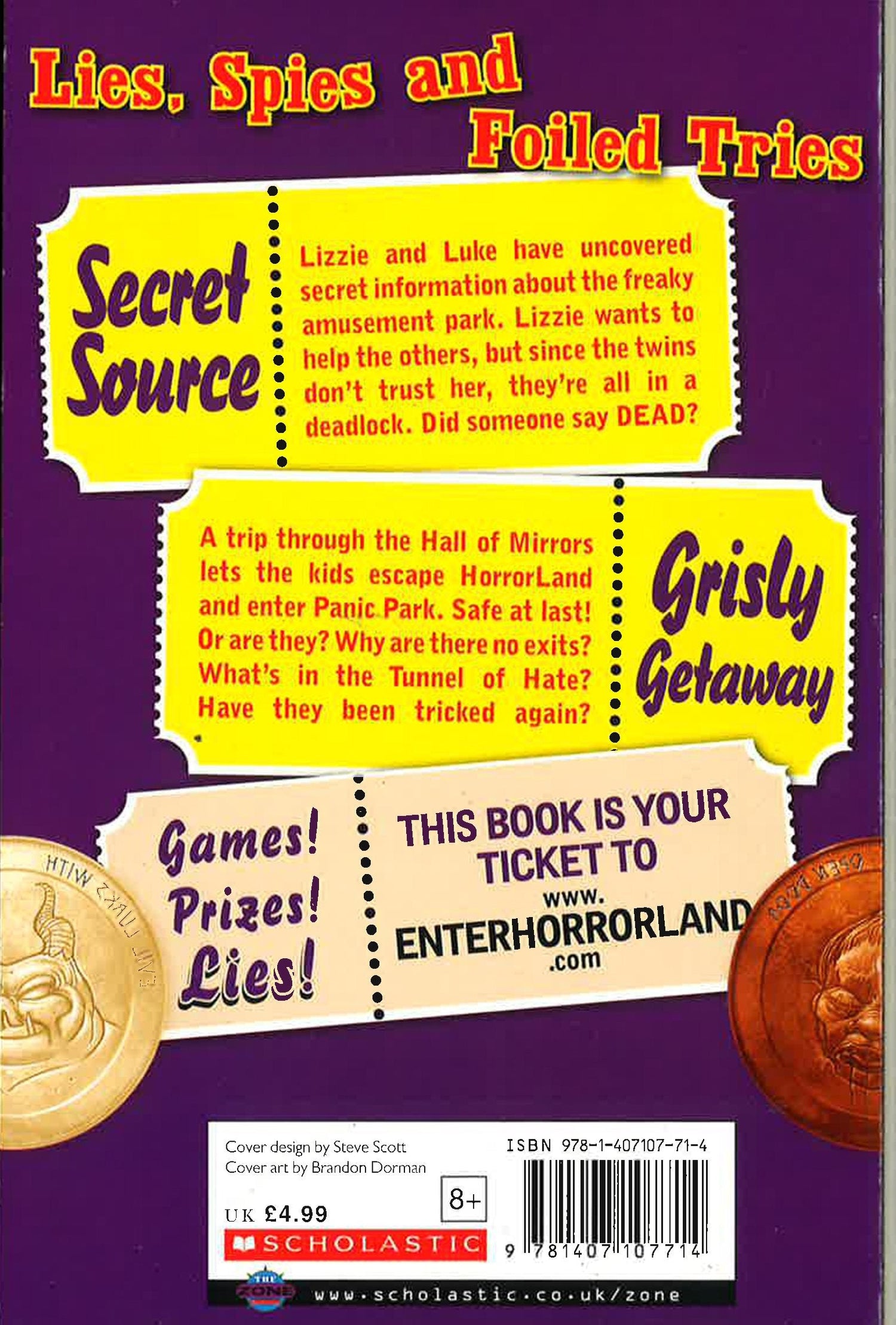 Not long ago, Luke and Lizzy Morris dared to spend one scary day at HorrorLand. They thought that NOTHING could lure them back, but their travel plans are about to change...Who - or WHAT - is summoning ordinary kids to HorrorLand and trapping them there? Luke and Lizzy are determined to find out. They've gathered every clue, and even launched their own secret website at EscapeHorrorLand.com. This time, Luke and Lizzy are prepared to face any danger - and any villain. Or so they thought..