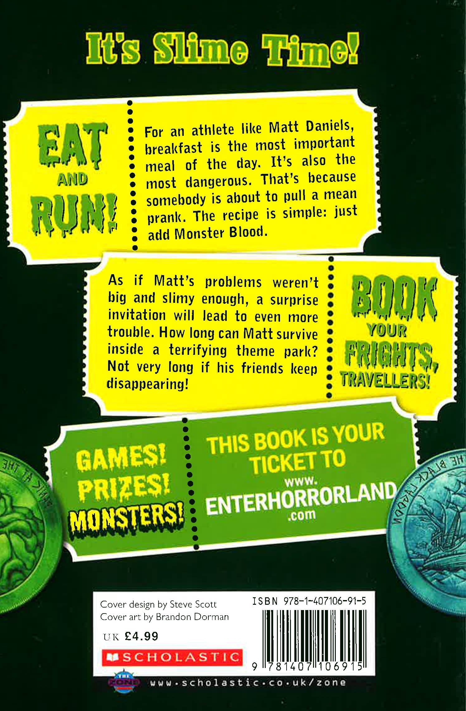 Fright-master R.L. Stine invites you on an all-new, all-terrifying adventure! When Matt ordered a container of Monster Blood from a weird website, his only intention was to play a harmless practical joke. But the joke's on him--and so is the mysterious green ooze. He's even eaten some of it! As if Matt's problems weren't big and slimy enough, an invitation to HorrorLand is also on its way. Can Matt and his sister survive inside a terrifying scream park where trouble lurks behind every turnstile? Can YOU?