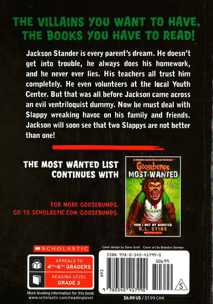 The evil puppet you hate to love is back for a brand new scare. Jackson Stander is every parent's dream. He doesn't get into trouble, he always does his homework, and he never, ever lies. His teachers all trust him completely. He even volunteers at the local Youth Center. But that was all before Jackson came across an evil ventriloquist dummy. Now he must deal with Slappy wreaking havoc on his family and friends. Jackson will soon see that two Slappy's are not better than one!