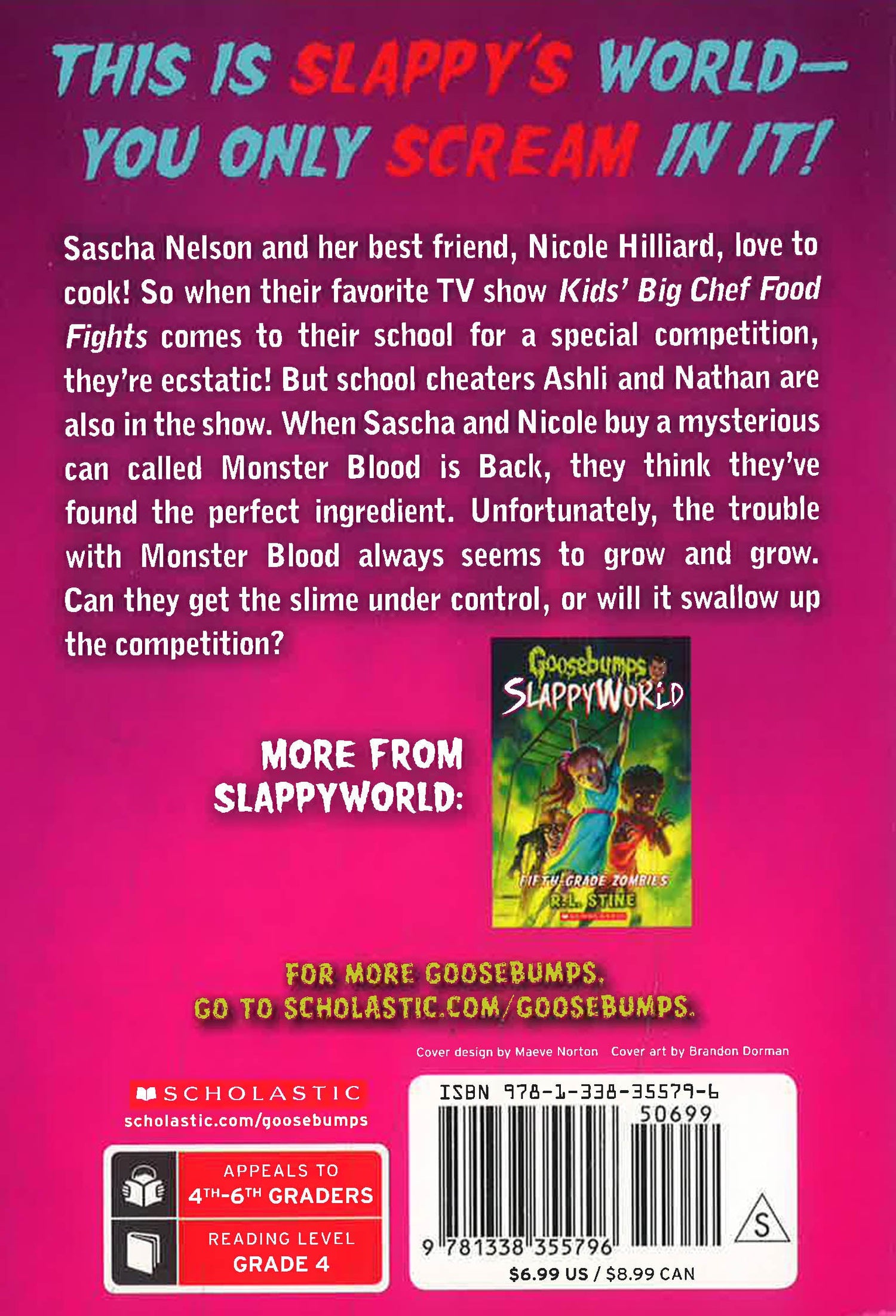 Sascha Nelson and her best friend Nicole Miller love to cook! After school, they spend their time concocting new dishes in the kitchen. So when their favorite TV show Kids Big Chef Food Fights comes to their school for a special competition, they're ecstatic! But with school cheaters Ashli and Diggs also in the show, things don't seem as fun anymore. When Sascha and Nicole buy a mysterious can called Monster Blood is Back, they use it to get back at Ashli and Diggs. But as the Monster Blood grows and grows, can the two get the slime under control or will it swallow up the competition?