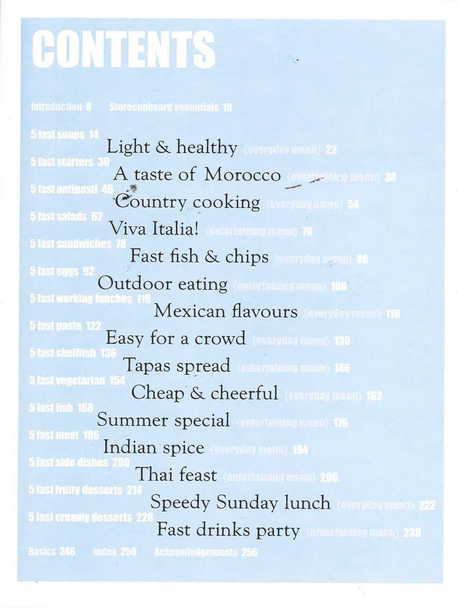 Shows how to get a great meal on the table in less time than it would take to have a takeaway delivered. This book contains ideas for 5-minute snacks, 10-minute main courses and 30-minute menus for all occasion. It shows you how to cook real food fast and make it taste delicious too.