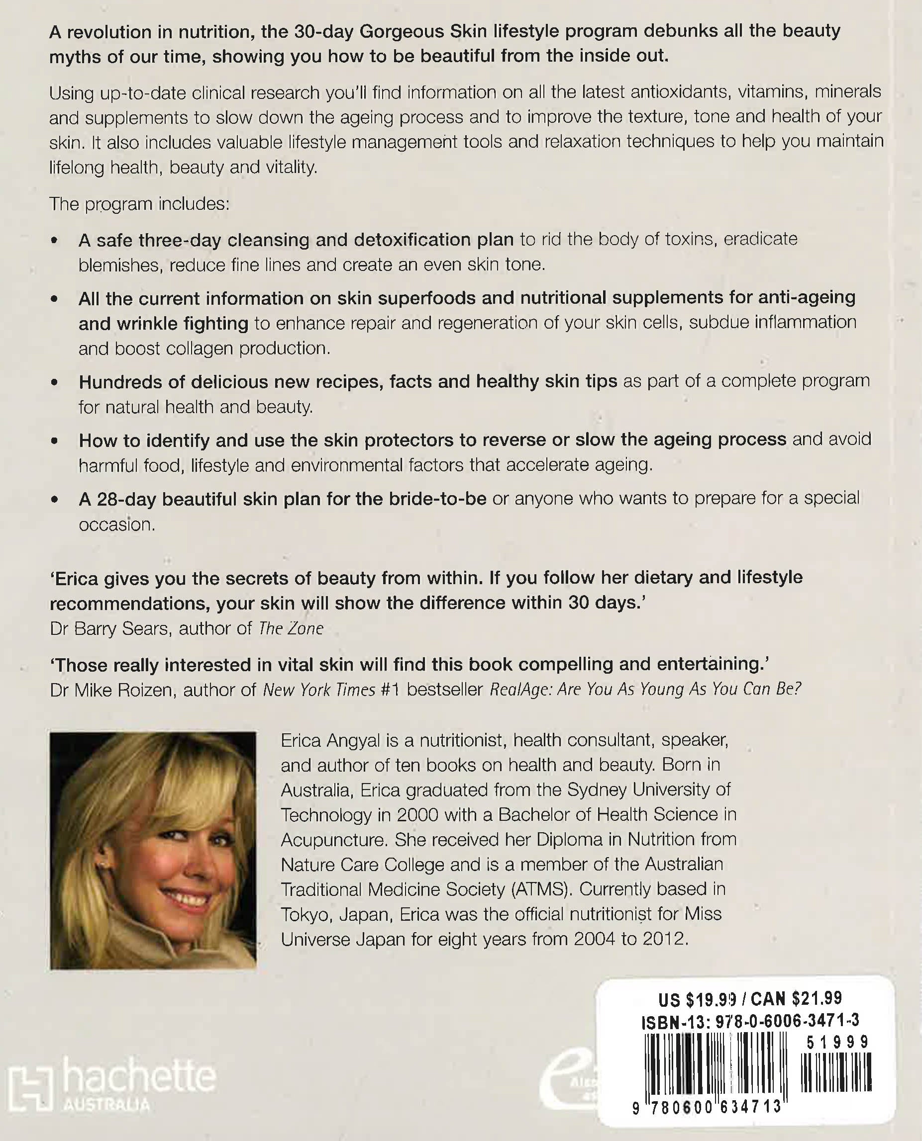 A revolution in nutrition, the 30-day Gorgeous Skin lifestyle program debunks all the beauty myths of our time, showing you how to be beautiful from the inside out. Using up-to-date clinical research, you'll find information on all the latest antioxidants, vitamins, minerals and supplements to slow down the ageing process and improve the texture, tone and health of your skin. The program includes a safe cleansing and detoxification plan to rid the body of toxins, eradicate blemishes, reduce fine lines and create an even skin tone, as well as a beautiful skin plan for the bride-to-be or anyone who wants to prepare for a special occasion. Gorgeous Skin in 30 Days shows you how to enhance, repair and regenerate your skin cells to reverse or slow the ageing process as well as highlighting harmful food, lifestyle and environmental factors that accelerate ageing. With hundreds of delicious new recipes, facts and healthy skin tips, this book also includes valuable lifestyle management tools and relaxation techniques to help you maintain lifelong health, beauty and vitality.