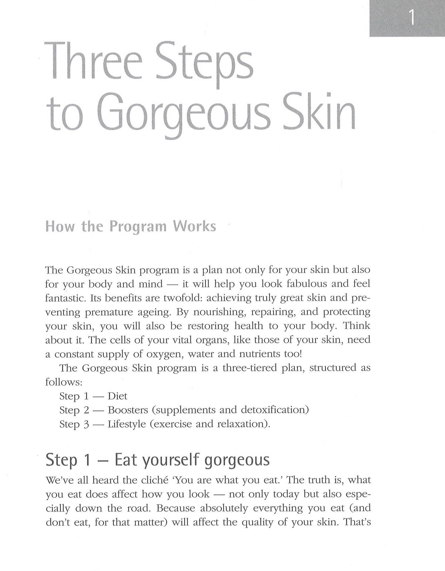 A revolution in nutrition, the 30-day Gorgeous Skin lifestyle program debunks all the beauty myths of our time, showing you how to be beautiful from the inside out.