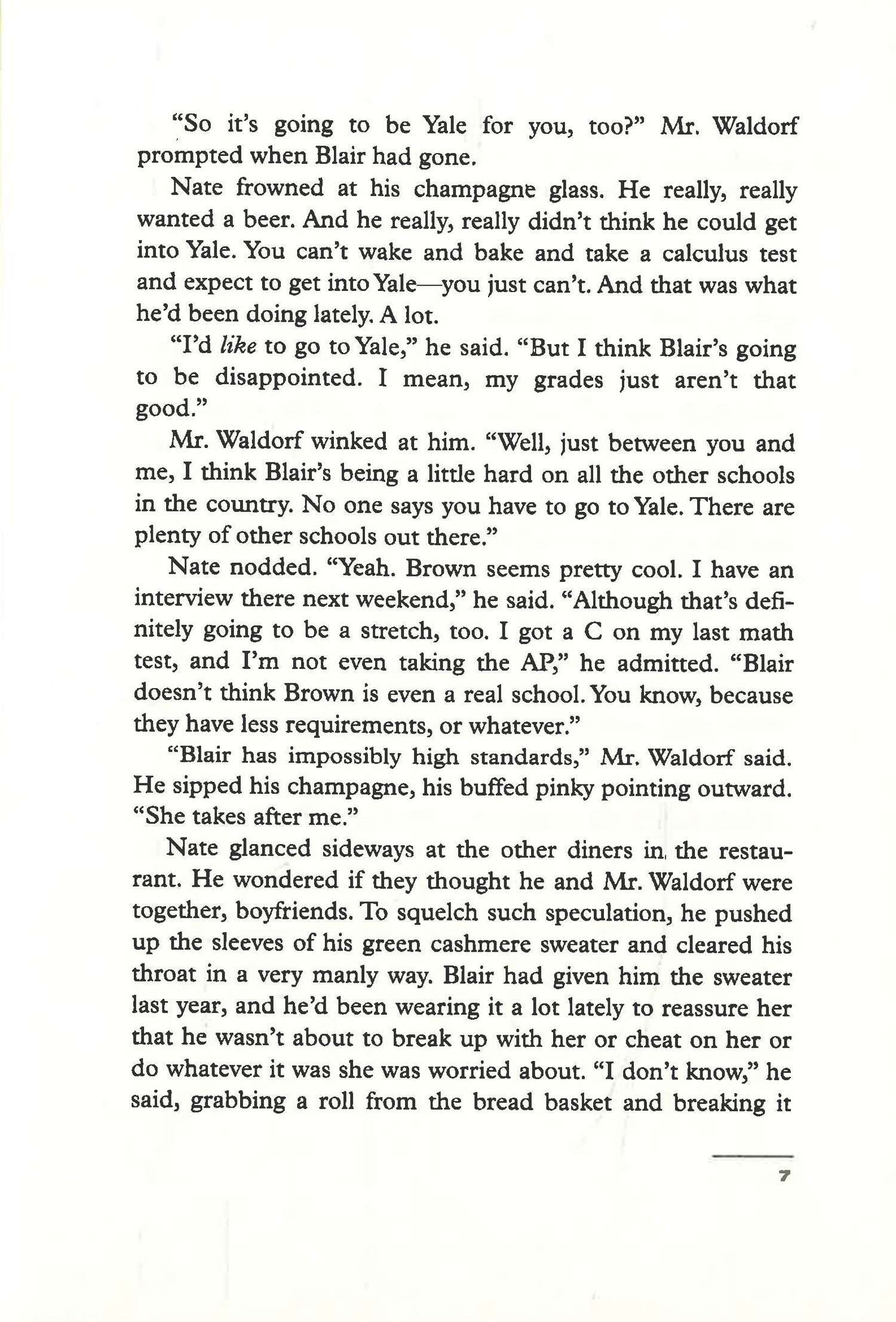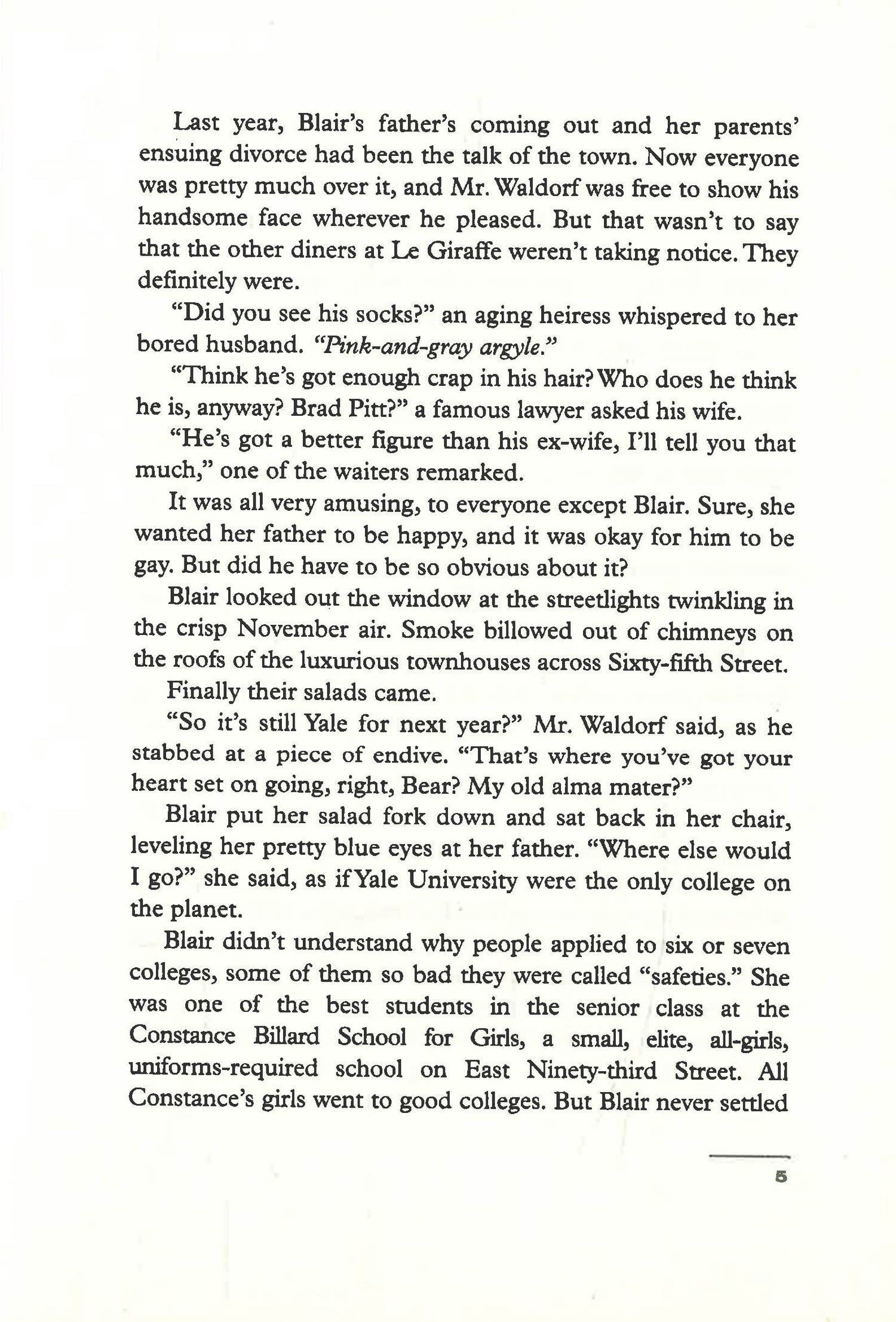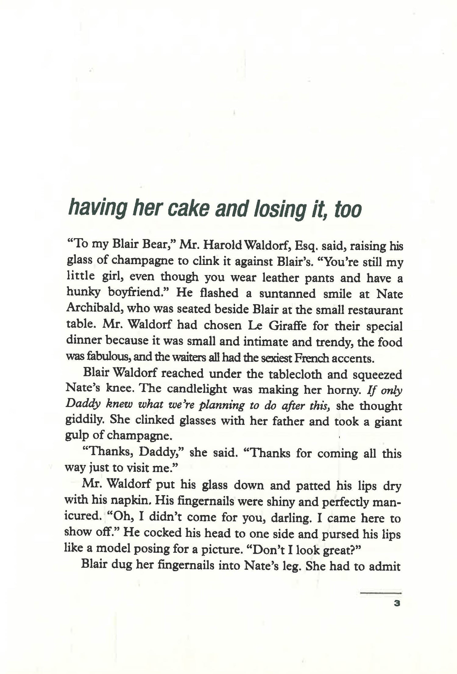 It's brunette vixen Blair Waldorf's seventeenth birthday, and she knows exactly what she wants: Nate, her studly, troubled boyfriend of three years. But Blair's been too busy filling out Ivy League college applications to notice that Nate has found himself another playmate . . .