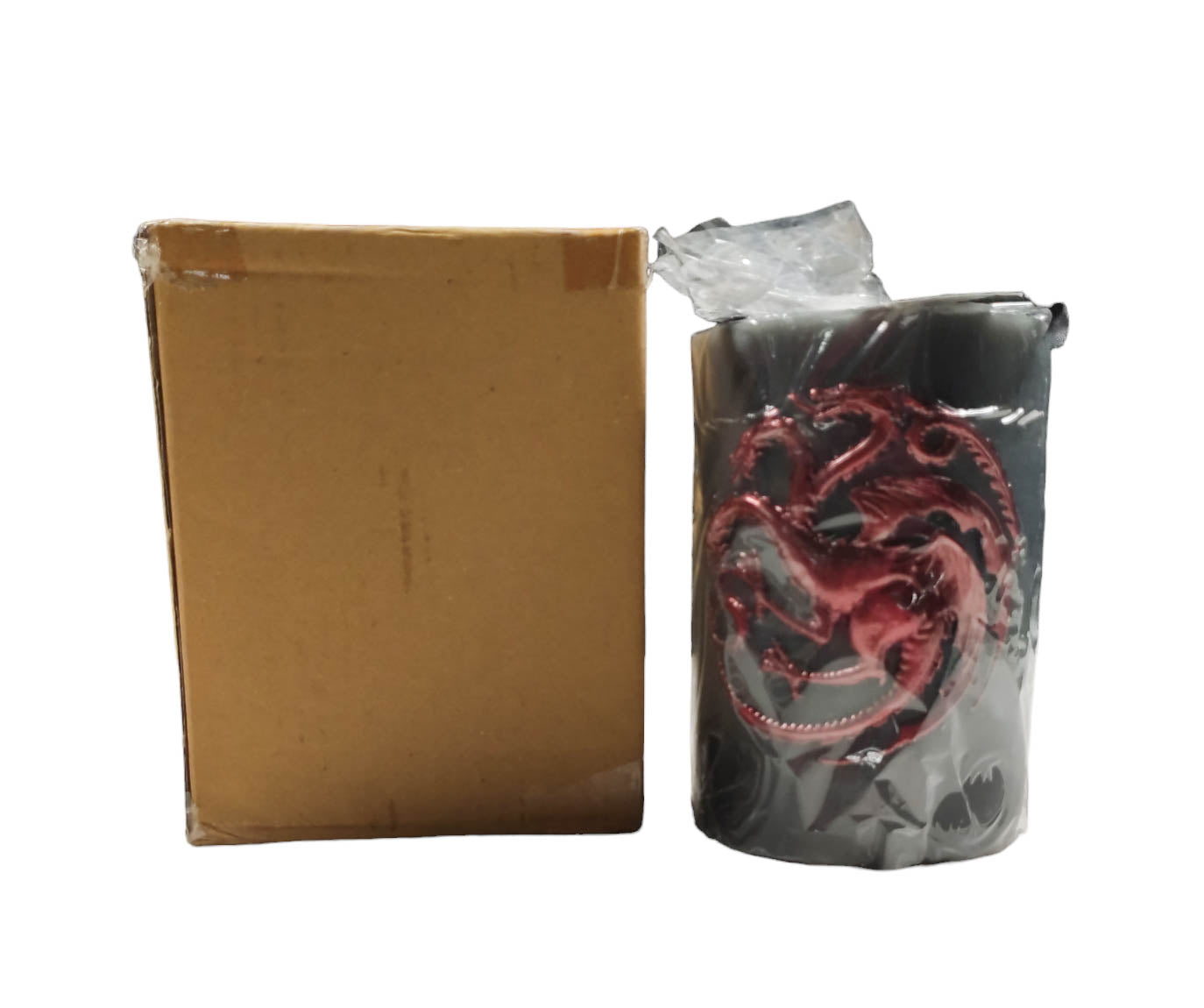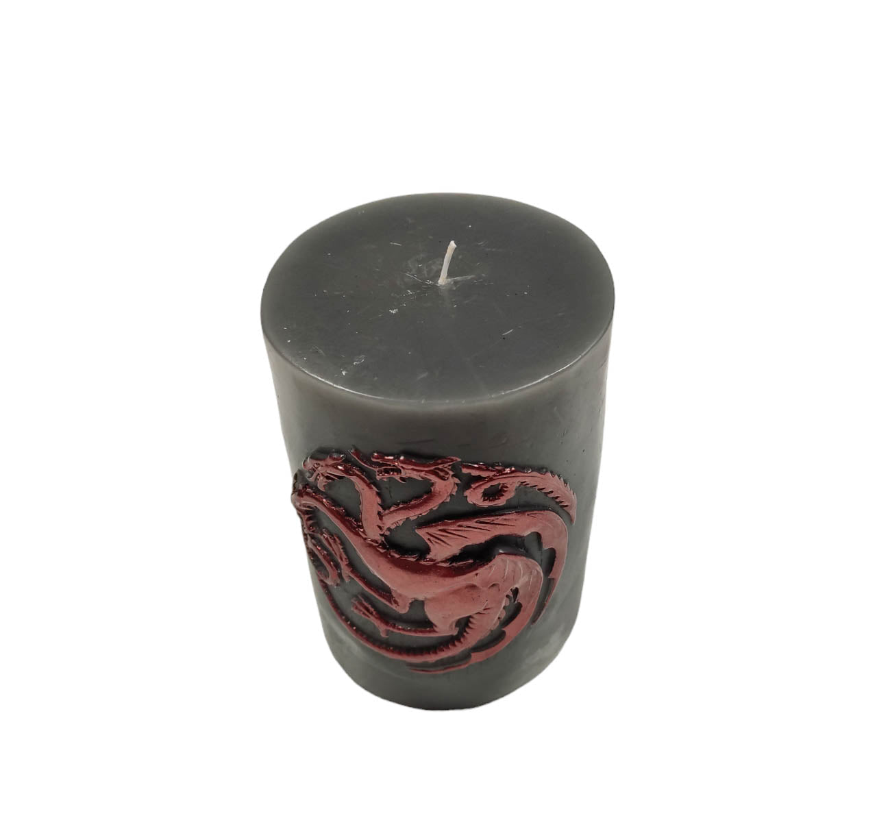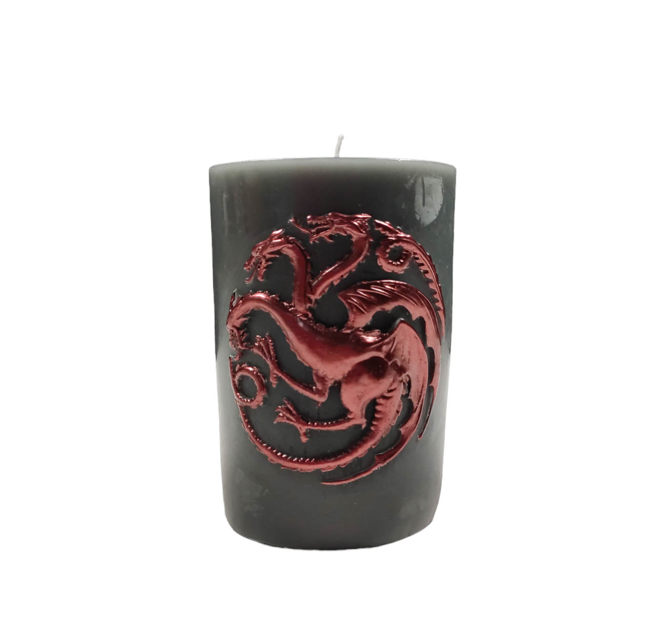 "Seeking to overthrow the ruling House Lannister, House Targaryen is one of the great houses of Westeros. Now Game of Thrones fans have the chance to properly prepare for the coming of winter with this deluxe House Targaryen candle. The distinctive pillar candle features a sculpted, hand-painted Targeryen sigil — a must-have decoration for any Game of Thrones fan!