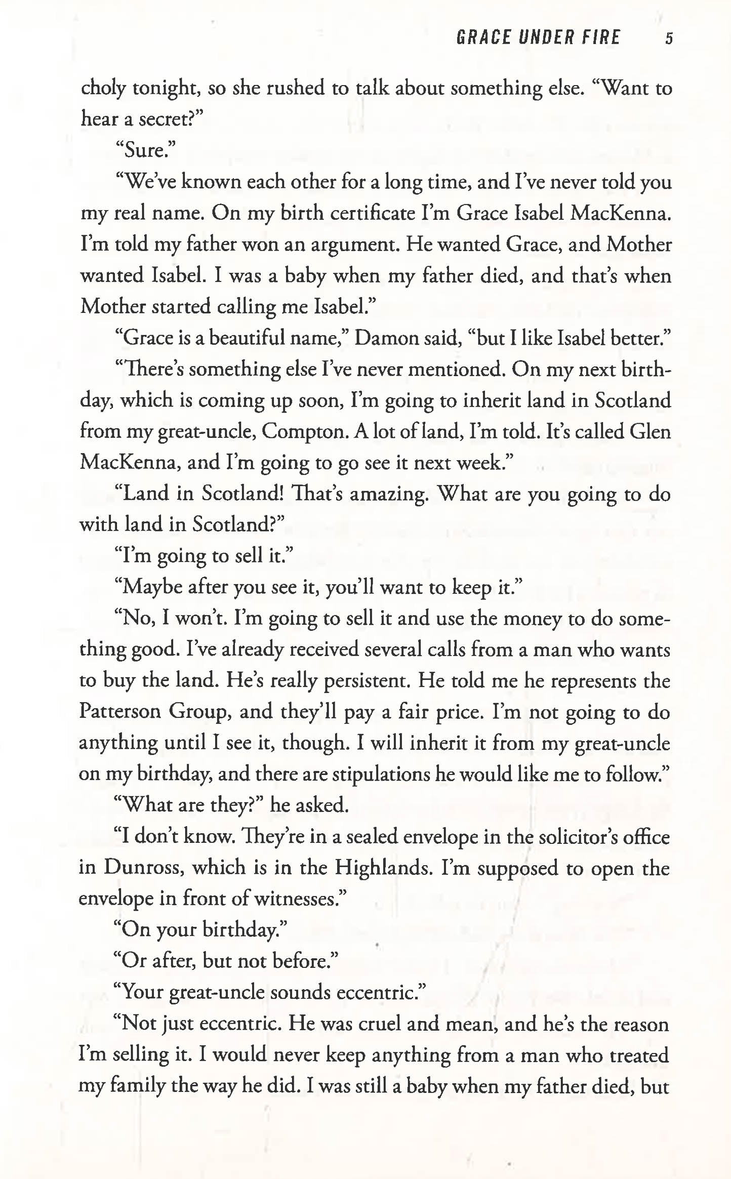 Isabel knows she should be grateful for Michael's help, but since she's harbored an extreme dislike for him for years, gratitude is difficult to muster. Michael has appointed himself her de facto guardian, and she's stuck with him despite their constant bickering and sizzling attraction. Even when Isabel goes to Scotland to claim her inheritance, Michael follows her--but he isn't the only thing she can't shake. Mysterious threats against Isabel surface, and before they can deal with their growing feelings for each other, Michael and Isabel must first survive.