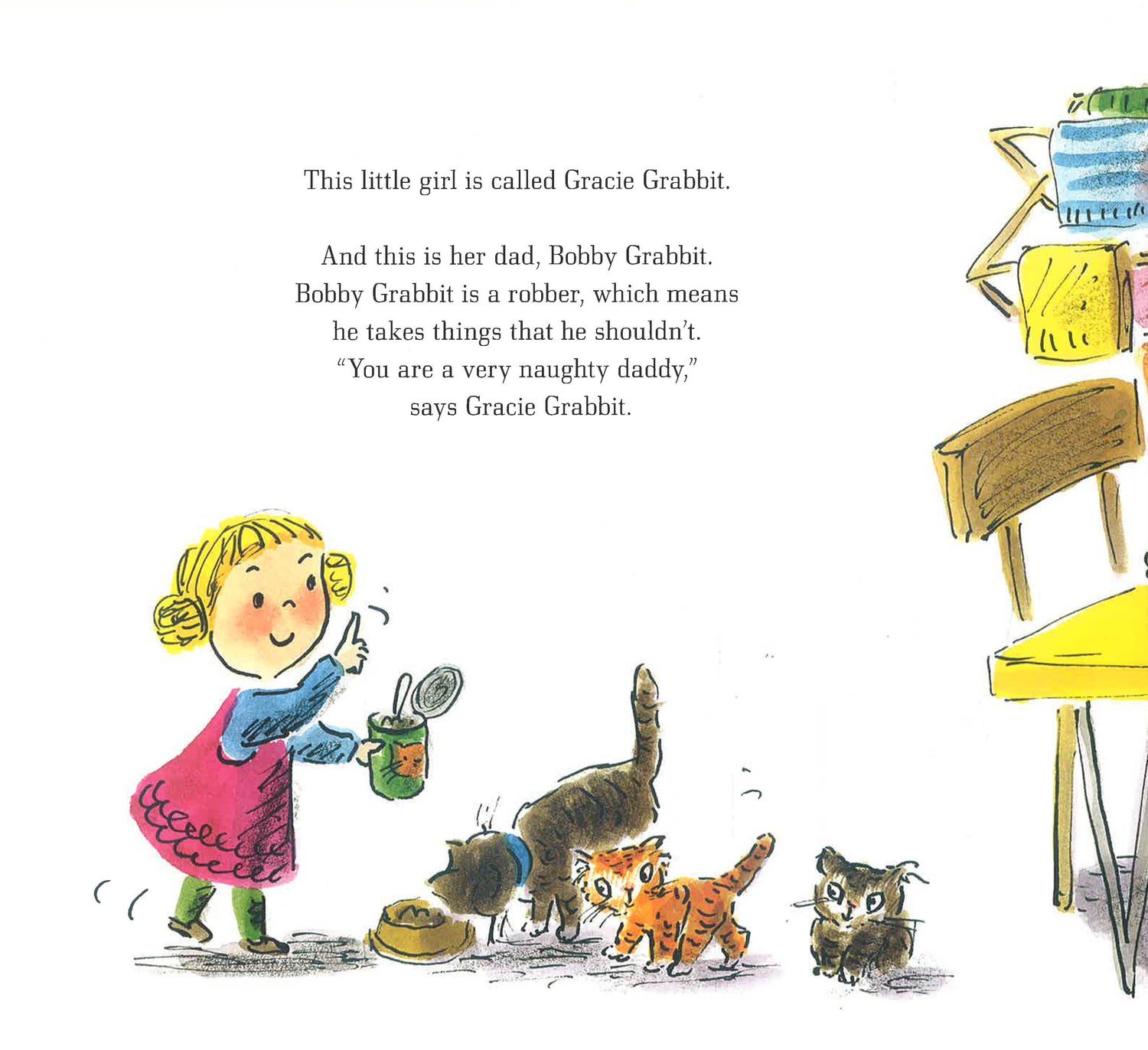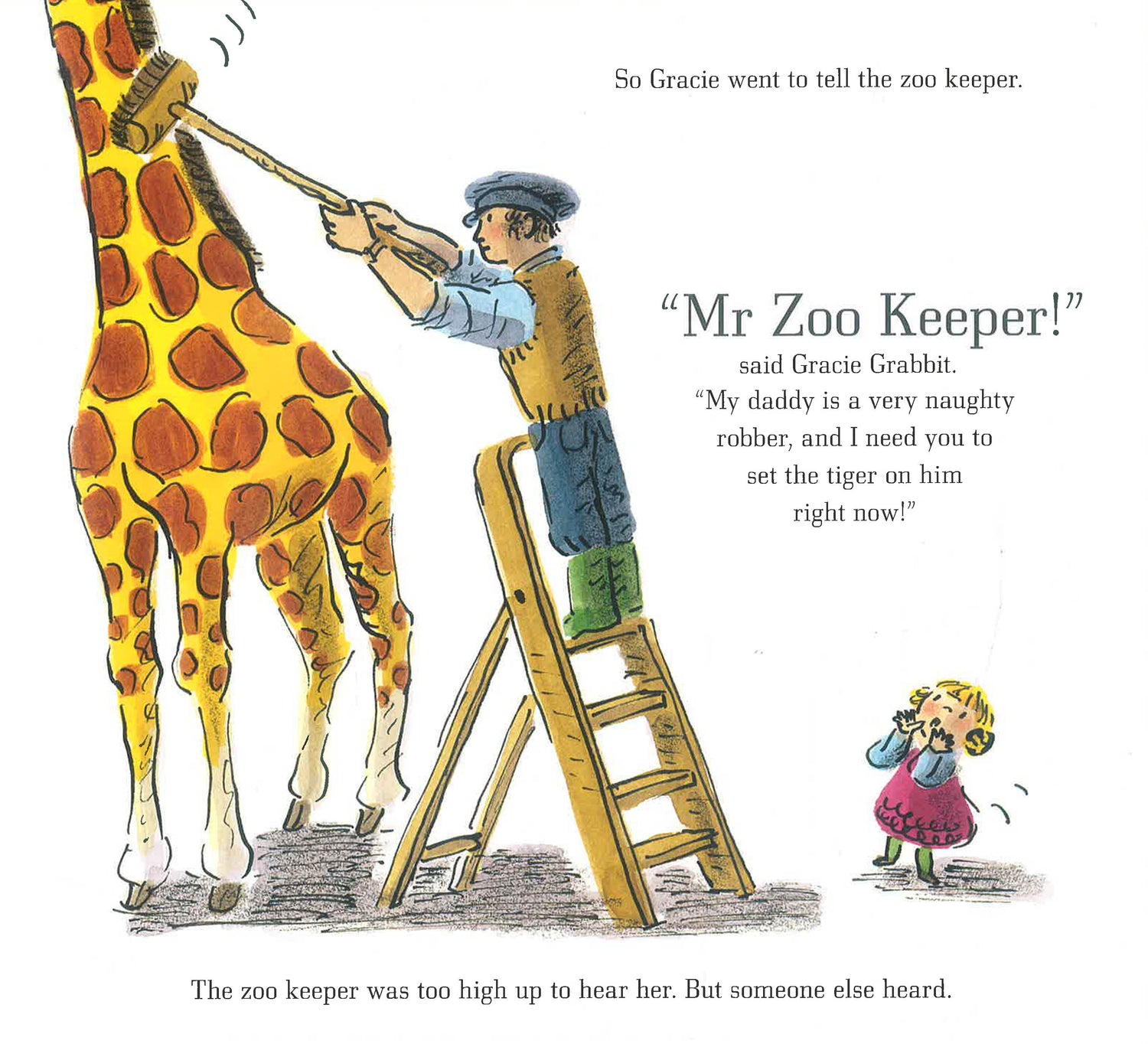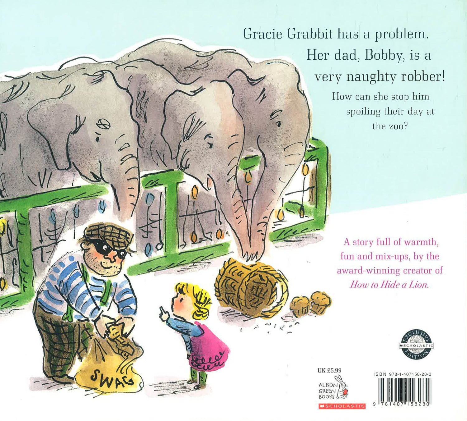 Did you love Helen Stephens’ cute picture book, How to Hide a Lion? (If you’ve not read it yet, you really must.) Well, now it’s time to hug a tiger! Just follow Gracie Grabbit to the zoo. This curious little girl can’t wait to see all the animals. There’s just one teensy problem: her dad is a naughty robber! He’s pinched the penguins’ fish, a baby’s rattle and the elephants’ buns. How can Gracie stop him? Well – this cuddly tiger has an idea! The most iconic tiger since The Tiger Who Came to Tea. The cheekiest robber since Burglar Bill. A picture book with classic appeal: sweet and funny and all-round gorgeous.