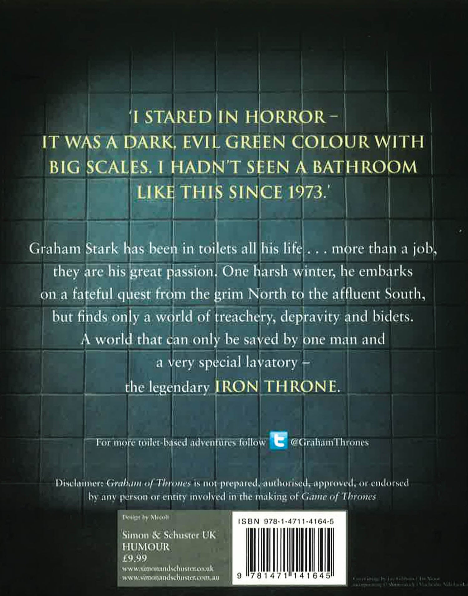 From the creators of Sunday Timesbestseller Fifty Sheds of Grey, Graham of Thronesis the hilarious story of one man's epic journey from the grim North to the affluent South, to face his destiny in the shape of the greatest of all lavatories, the mythical Iron Throne. On his way he must overcome brash bathroom salesman Jeremy Glennister, his diminutive philosophical plumber's mate, Tyrone and his wife's miniature dragon collection.