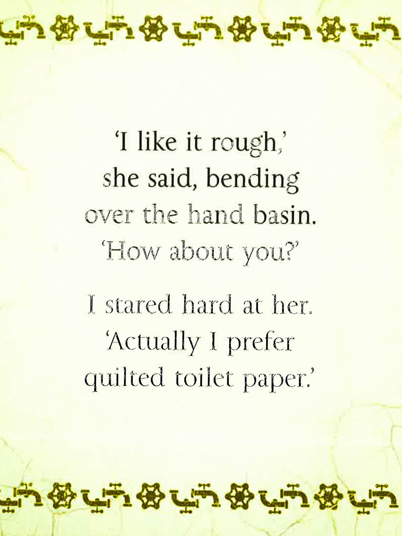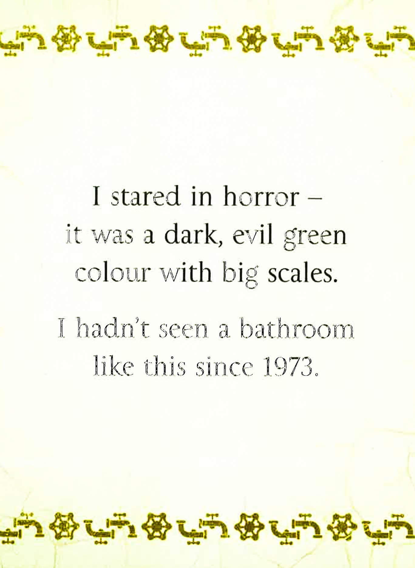 I stared in horror - it was a dark, evil green colour with big scales. I hadn't seen a bathroom like this since 1973.'