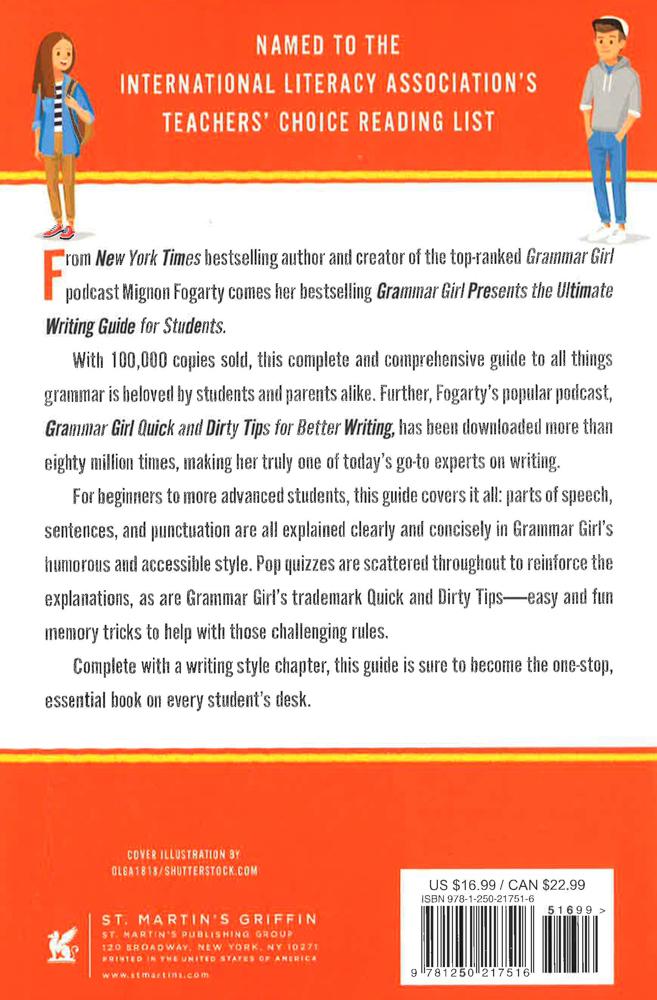 From New York Times bestselling author and creator of the top ranked Grammar Girl podcast, Mignon Fogarty, comes her bestselling Grammar Girl Presents the Ultimate Writing Guide for Students. With 100,000 copies sold, this is a complete and comprehensive guide to all things grammar from Grammar Girl whose popular podcast, Grammar Girl's Quick and Dirty Tips for Better Writing, has been downloaded over eighty million times. For beginners to more advanced students, this guide covers it all: the parts of speech, sentences, and punctuation are all explained clearly and concisely in Grammar Girl's humorous and accessible style. Pop quizzes are scattered throughout to reinforce the explanations, as well as Grammar Girl's trademark Quick and Dirty Tips-easy and fun memory tricks to help with those challenging rules. Complete with a writing style guide chapter, this guide is sure to become the one-stop, essential book on every student's desk.