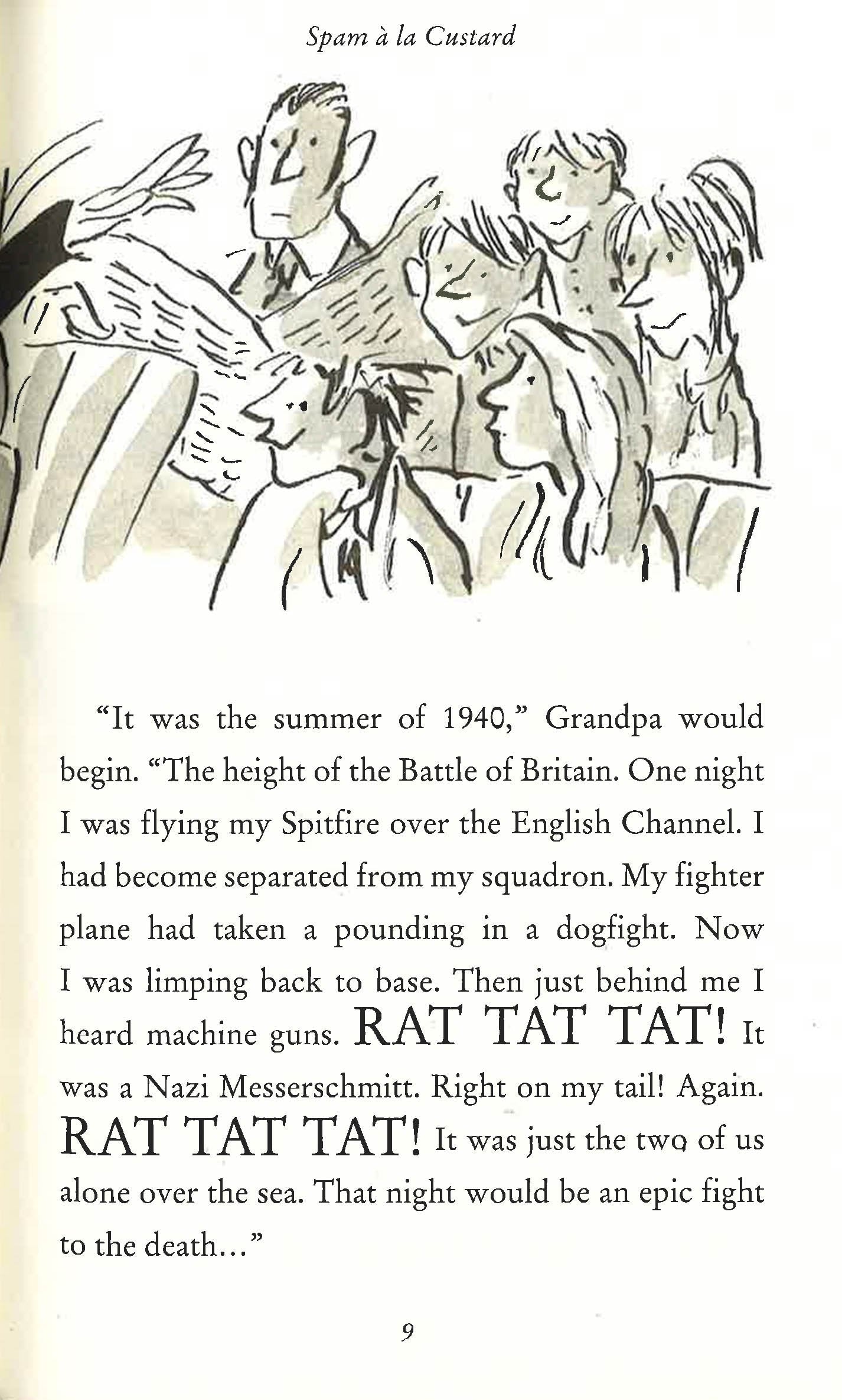 Grandpa is Jack's favorite person in the world. It doesn't matter that he wears his slippers to the supermarket, serves Spam a la Custard for dinner, and often doesn't remember Jack's name. But then Grandpa starts to believe he's back in World War II, when he was a Spitfire fighter pilot, and he's sent to live in an old folk's home run by the sinister Matron Swine. Now it's up to Jack to help Grandpa plot a daring escape!