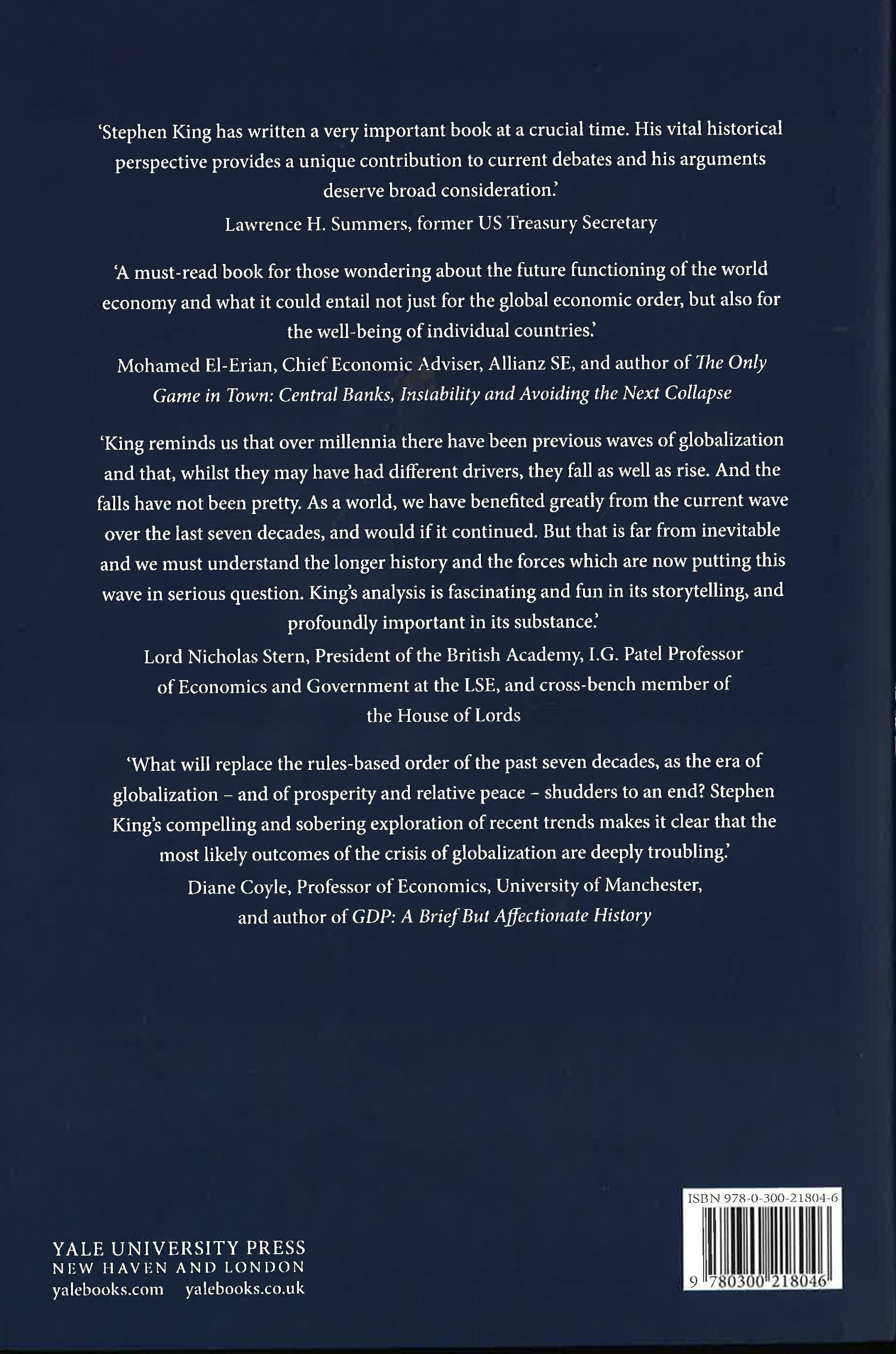 Combining historical analysis with current affairs, economist Stephen D. King provides a provocative and engaging account of why globalization is being rejected, what a world ruled by rival states with conflicting aims might look like, and how the pursuit of nationalist agendas could result in a race to the bottom. King argues that a rejection of globalization and a return to "autarky" will risk economic and political conflict, and he uses lessons from history to gauge how best to avoid the worst possible outcomes.