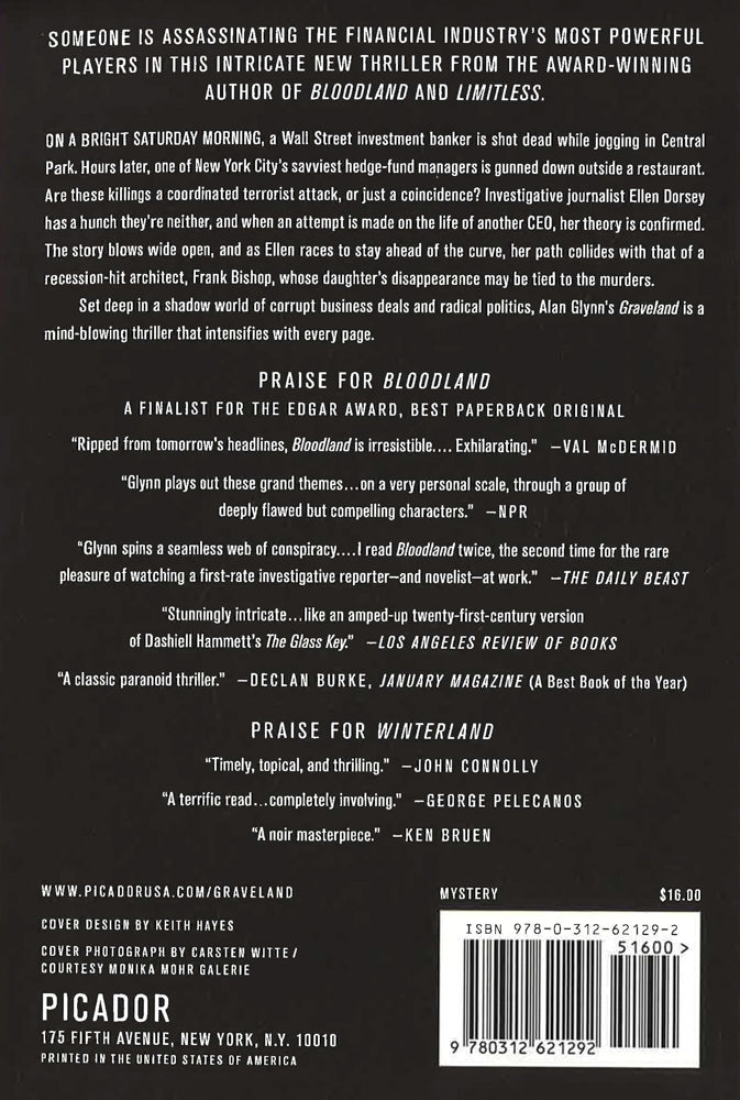 On a bright Saturday morning, a Wall Street investment banker is shot dead while jogging in Central Park. Hours later, one of New York City's savviest hedge-fund managers is gunned down outside a restaurant. Are these killings a coordinated terrorist attack, or just a coincidence? Investigative journalist Ellen Dorsey has a hunch they're neither, and when an attempt is made on the life of another CEO, her theory is confirmed. The story blows wide open, and as Ellen races to stay ahead of the curve, her path collides with that of a recession-hit architect, Frank Bishop, whose daughter's disappearance may be tied to the murders. Set deep in a shadow world of corrupt business deals and radical politics - with a plot that echoes today's headlines in haunting and unexpected ways - Graveland is a mind-blowing thriller that intensifies with every page.