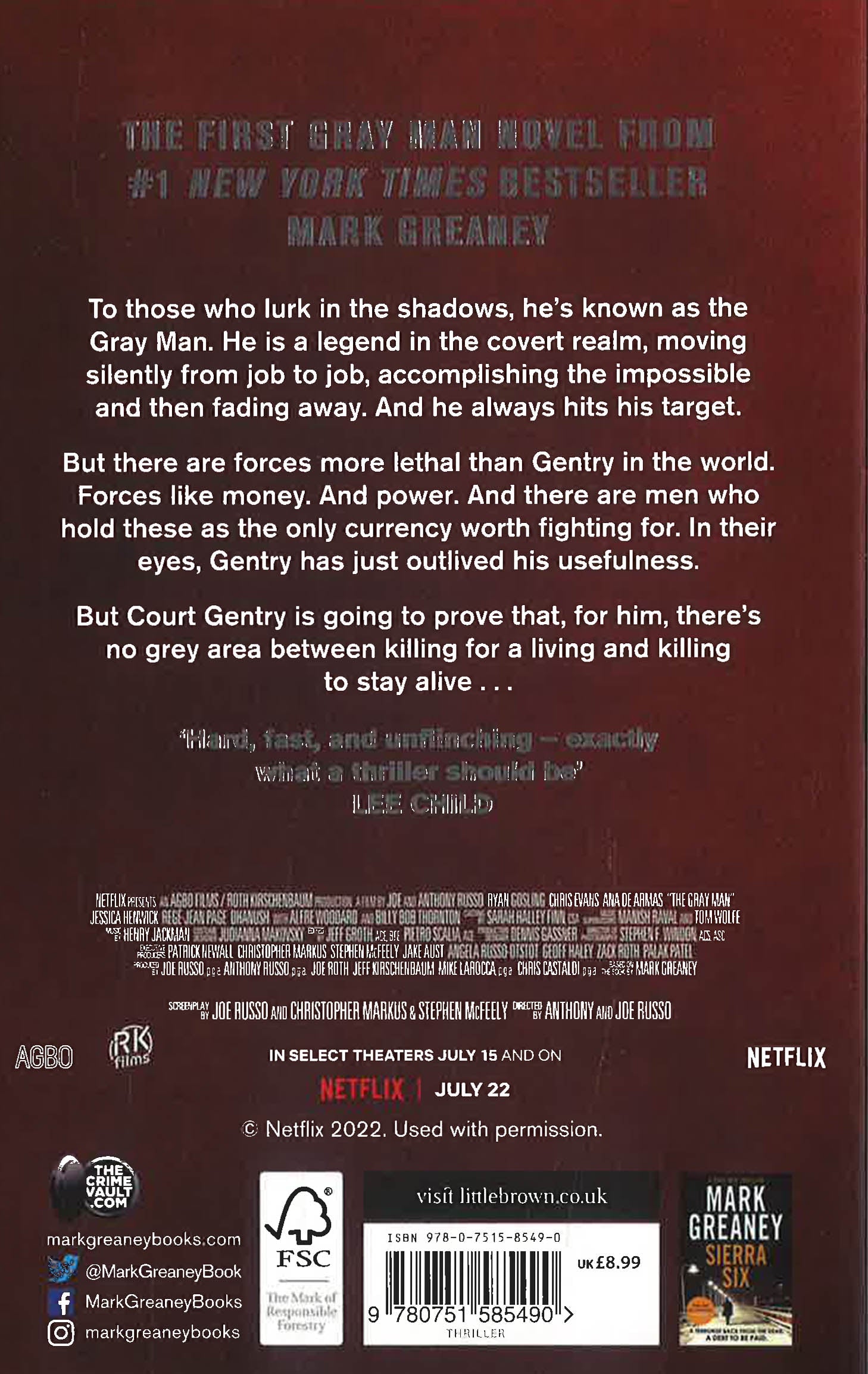 THE FIRST GRAY MAN NOVEL FROM #1 NEW YORK TIMES BESTSELLING AUTHOR MARK GREANEY - soon to be a Netflix original film starring Ryan Gosling and Chris Evans