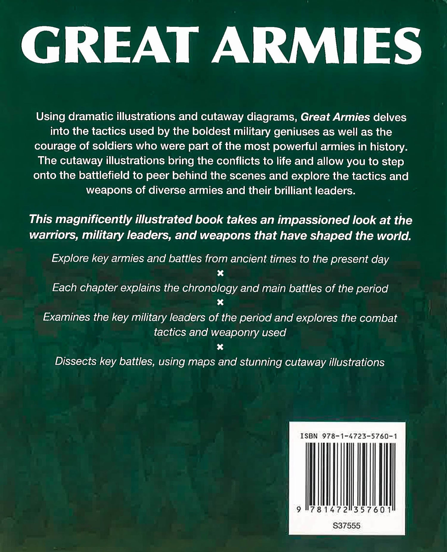 Explores the key armies and battles from ancient times to the present day. Using beautiful photographs and cutaway illustrations, Great Armies delves into the tactics put forward by the boldest military geniuses as well as the courage of soldiers who formed the most powerful armies in history. The cutaway illustrations bring the conflicts to life and allow you to step onto the battlefield to peer behind the scenes and explore the tactics and weapons of diverse armies and their brilliant leaders.