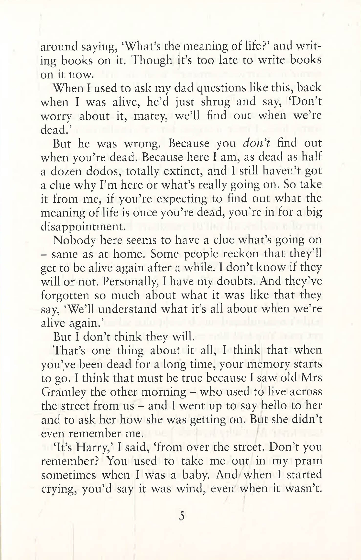 That's what Harry said to his sister, before the incident with the lorry. And now he is just that – dead.