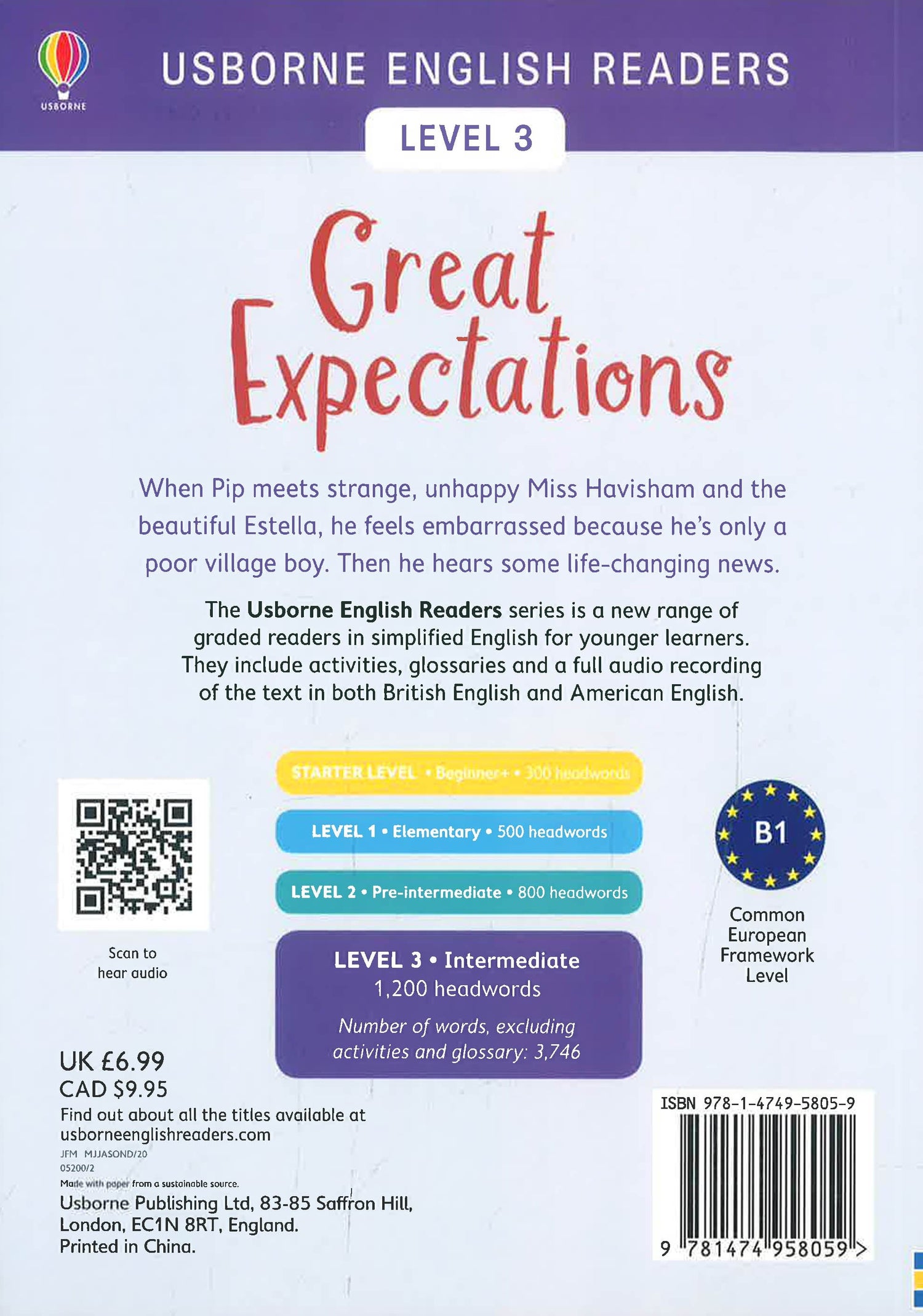 When Pip meets strange, unhappy Miss Havisham and the beautiful Estella, he feels embarrassed because he's only a poor village boy. Then he hears some life-changing news. Includes a word list, 5 pages of activities and free online audio (British English and American English). 1,200 headwords, 3,497 words