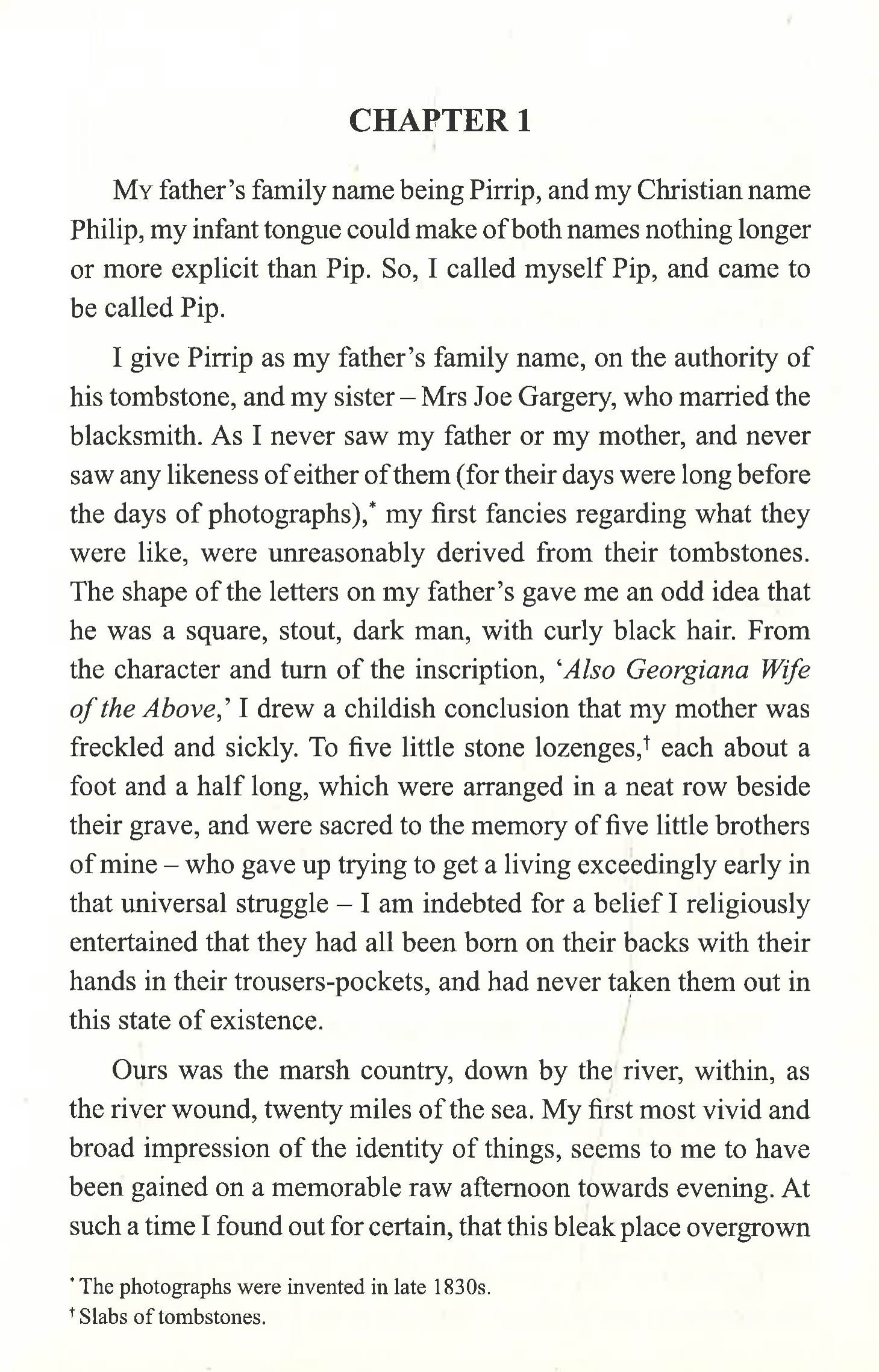 Young, orphaned Philip Pirrip ? known lovingly as Pip ? lives with his borderline abusive elder sister, who also doubles as a flawed mother figure. Narrated in the first person by Pip, Charles Dickens? Great Expectations is a story of ambition and opportunities. Despite being relegated by birth to lowly circumstances, Pip dreams big. One day, luck seems to turn in his favour, and Pip?s prospects start to look up. But the young boy has many hard lessons to learn as he grows up, and ambition, it would seem, could come at the cost of things much more precious in life.