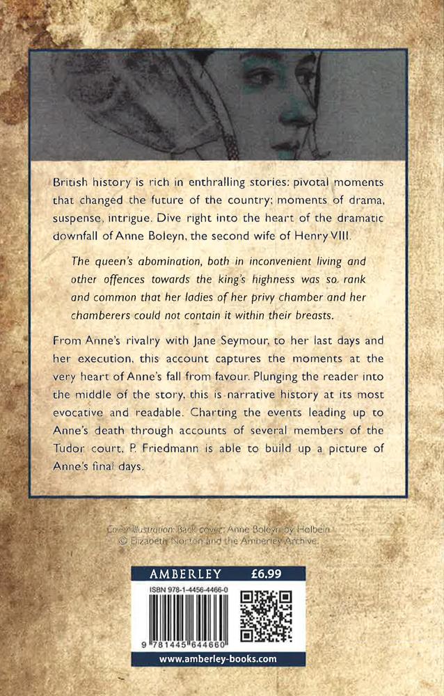 From Anne's rivalry with Jane Seymour, to her last days and her execution, this account captures the moments at the very heart of Anne's fall from favour. Plunging the reader into the middle of the story, this is narrative history at its most evocative and readable. Charting the events leading up to Anne's death through accounts of several members of the Tudor court, P. Friedmann is able to build up a picture of Anne's final days.