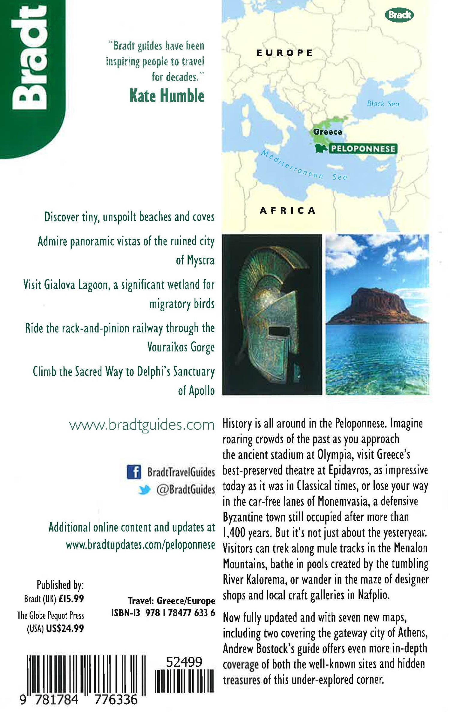This new edition of Bradt's Greece: The Peloponnese with Athens, Delphi and Kythira remains the only dedicated guidebook to the southern part of the Greek mainland and provides more detailed coverage of the peninsula than any other rival book, making it an indispensable read for travellers to this small but fascinating part of Greece. It also incorporates a focussed mini-guide to the Greek capital of Athens and nearby world famous site of Delphi and is particularly strong on off-the-beaten-track sites, background information, accommodation and other subjects of interest for both independent travellers and those travelling as part of a group. Originally written by Andrew Bostock, an expert on Greece and former resident of the Peloponnese, this fourth edition has been updated by Bradt's most prolific and experienced guidebook writer Philip Briggs. Selective listings have been refreshed to reflect a growing trend towards eco-conscious boutique hotels. As with previous editions, in-depth coverage of well-known sites is supplemented by descriptions of lesser-known attractions and independent tours and activities, reflecting the reality that the Peloponnese, more than any other part of Greece, exemplifies the ideals of 'slow travel'. With Bradt's Greece: The Peloponnese, discover hidden villages, sophisticated towns and other top attractions, including one of Europe's most spectacular train journeys and the tower houses of the famed Mani. Explore hidden sites, including places not covered anywhere else. The guide is packed with information on agritourism spots, camping under the stars, rustic tavernas and locally grown produce. For those coming out of high season, revel in the delights of the wildflowers of spring, the joys of the olive harvest in late autumn and skiing opportunities during the winter. Bird life and marine life are also a huge attraction for visitors to the Peloponnese. The guide also focuses on the colourful life of the traditional 'paneyiri' and those who still embrace the Greek spirit of 'philoxenia'.