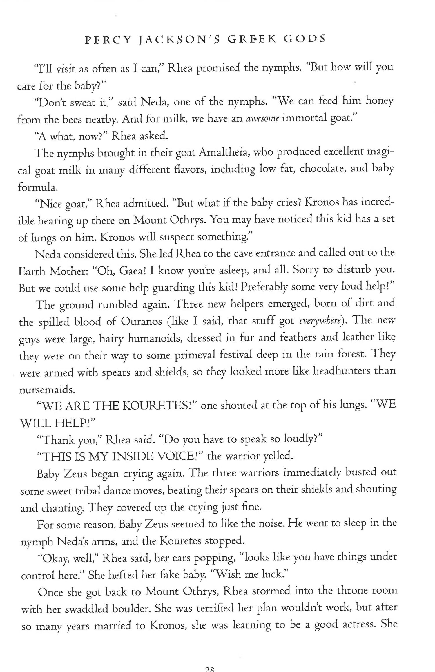 A publisher in New York asked me to write down what I know about the Greek gods, and I was like, Can we do this anonymously? Because I don't need the Olympians mad at me again. But if it helps you to know your Greek gods, and survive an encounter with them if they ever show up in your face, then I guess writing all this down will be my good deed for the week. So begins Percy Jackson's Greek Gods, in which the son of Poseidon adds his own magic - and sarcastic asides - to the classics. He explains how the world was created, then gives readers his personal take on a who's who of ancients, from Apollo to Zeus. Percy does not hold back. "If you like horror shows, blood baths, lying, stealing, backstabbing, and cannibalism, then read on, because it definitely was a Golden Age for all that." Dramatic full-color illustrations throughout by Caldecott Honoree John Rocco make this volume - a must for home, library, and classroom shelves - as stunning as it is entertaining.