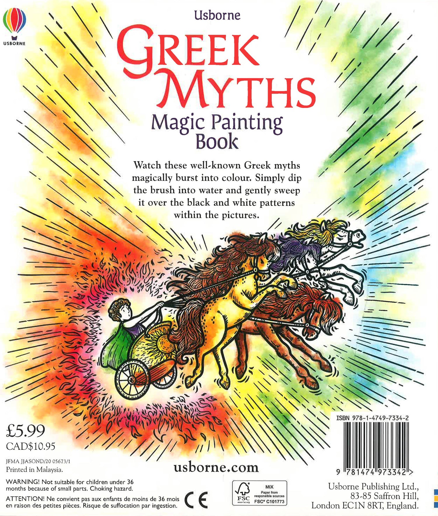 An activity book filled with scenes of well-known Greek myths, from famous heroes and enchantresses to magical, many-headed monsters. Dip the brush in water and sweep it across the pages to reveal stunning colours, from golden fruit on King Midas's table to rainbow feathers on Pegasus's wings.