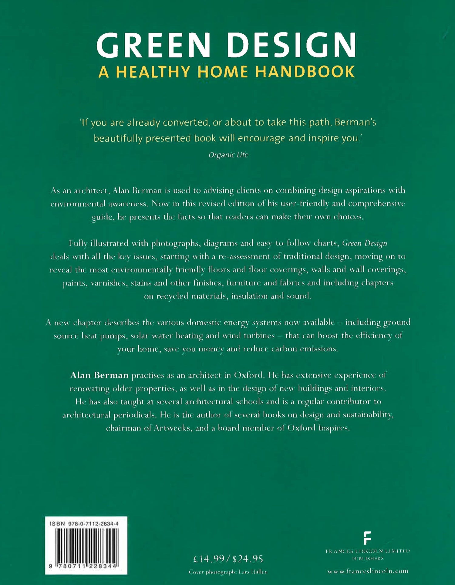As an architect, Alan Berman is used to advising clients on combining design aspirations with environmental awareness. Now in this revised edition of his user-friendly and comprehensive guide, he presents the facts so that readers can make their own choices. Fully illustrated with photographs, diagrams and easy-to-follow charts, the book deals with all the key issues, starting with a re-assessment of traditional design, moving on to reveal the most environmentally friendly floors and floor coverings, walls and wall coverings, paints, varnishes, stains and other finishes, furniture and fabrics and including chapters on recycled materials, insulation, heating, sound and ventilation.
