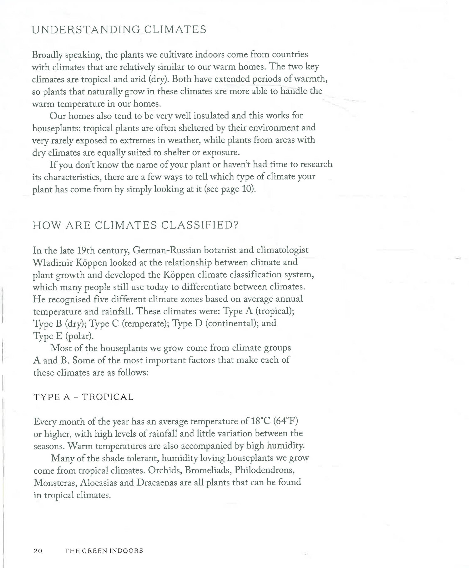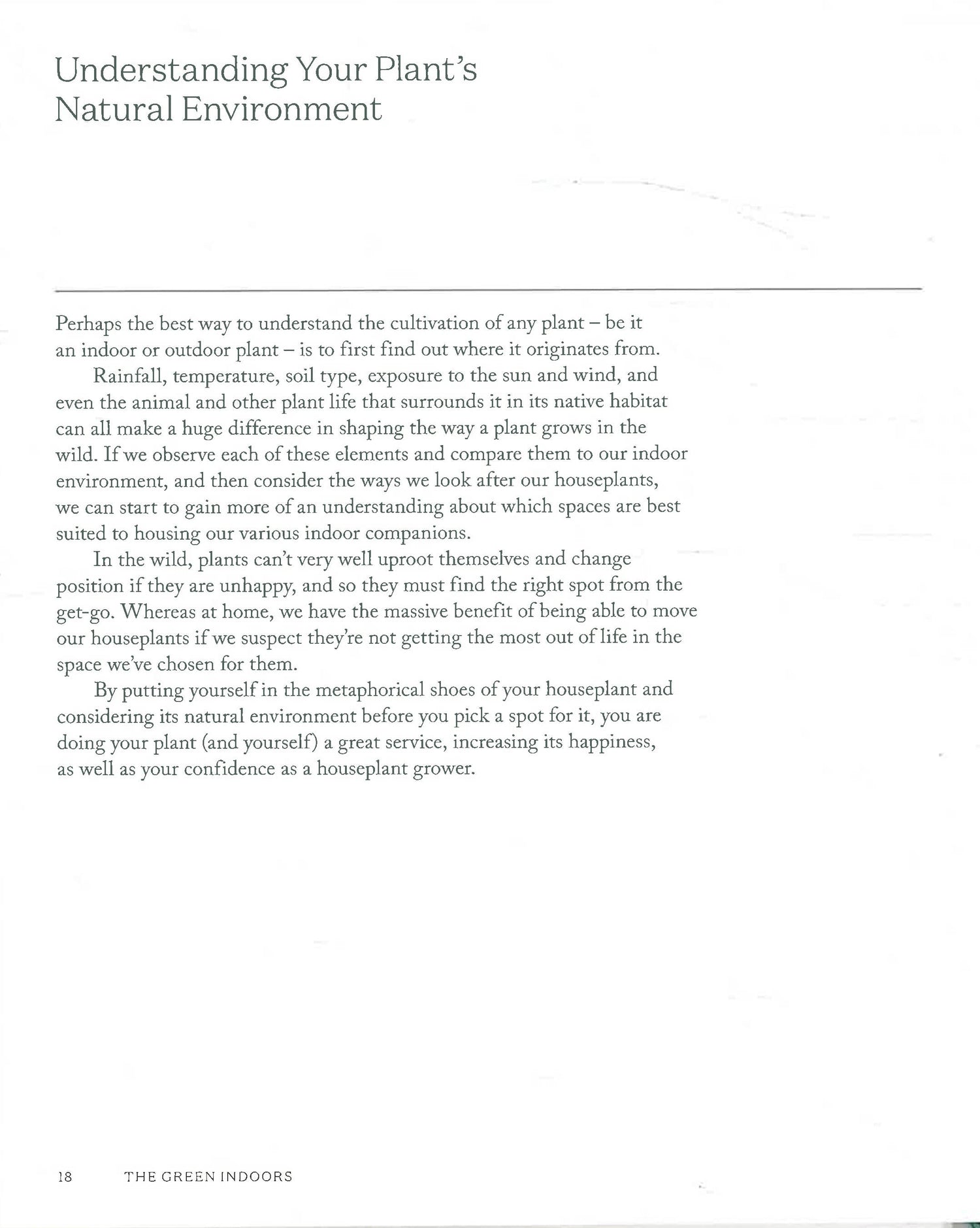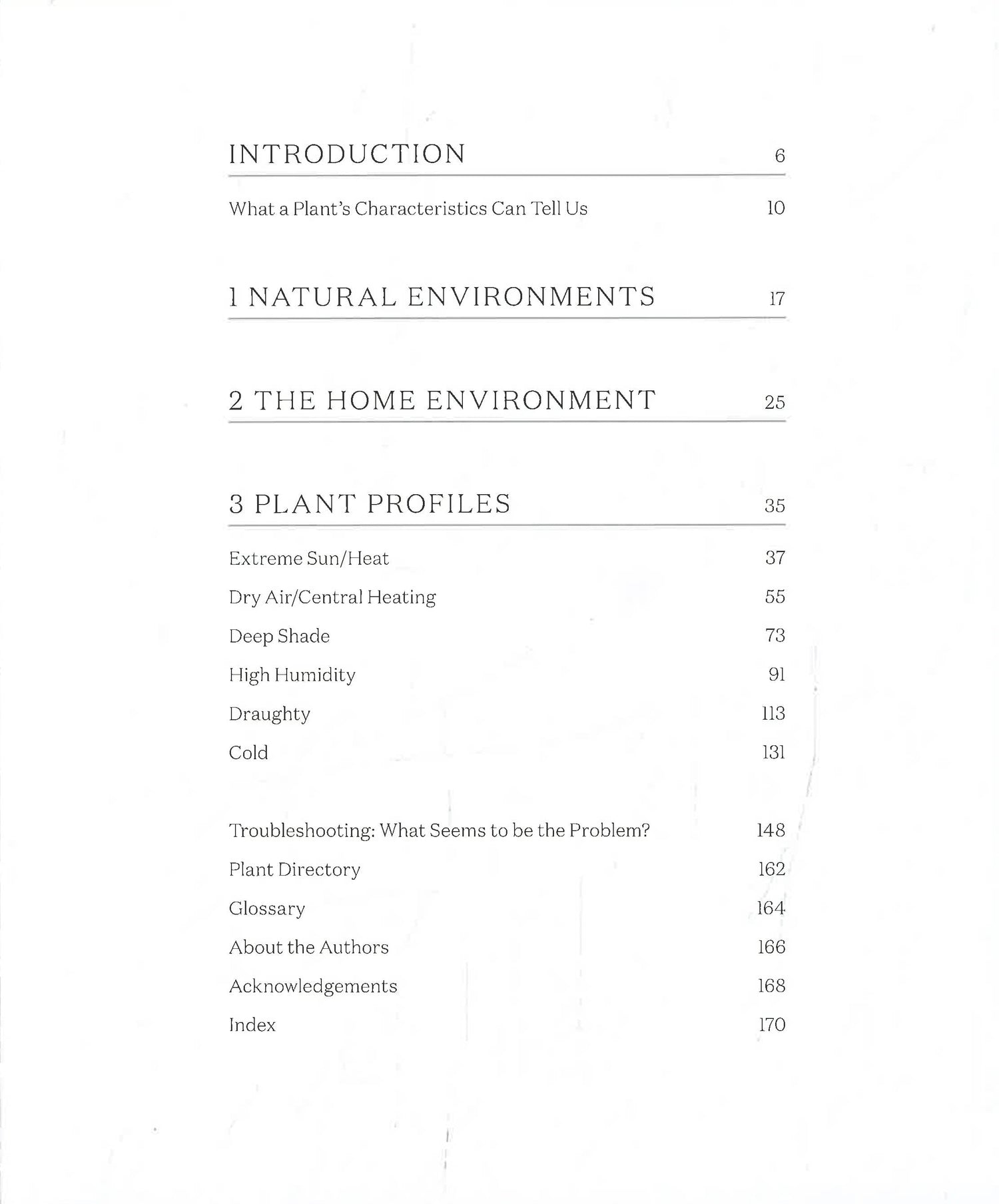 Focusing on working with the plants you already own, the book is divided in chapters detailing all the possible conditions: Extreme Sun/Heat, Dry Air/Central Heating, Deep Shade, High Humidity, Draughty, Cold.