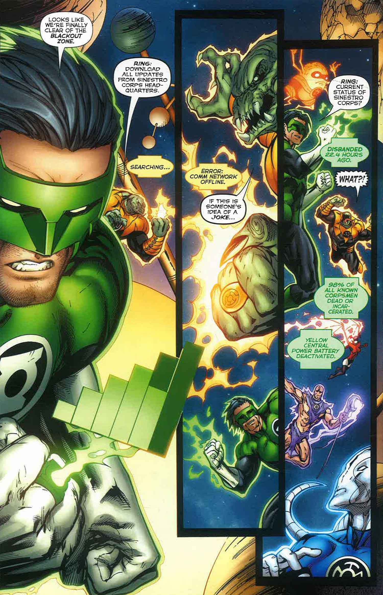 When Green Lantern Kyle Rayner found one of each of the multi-colored Lantern rings in his possession, he found himself hunted by some of the most power, diverse and dangerous members of the other Lantern corps. Now the mystery must be put on hold as Odym, the homeworld of the Blue Lanterns, is being attacked by alien conquerors know as The Reach. But betrayed by one of their own, the NEW GUARDIANS uneasy alliance teeters on the edge of destruction.