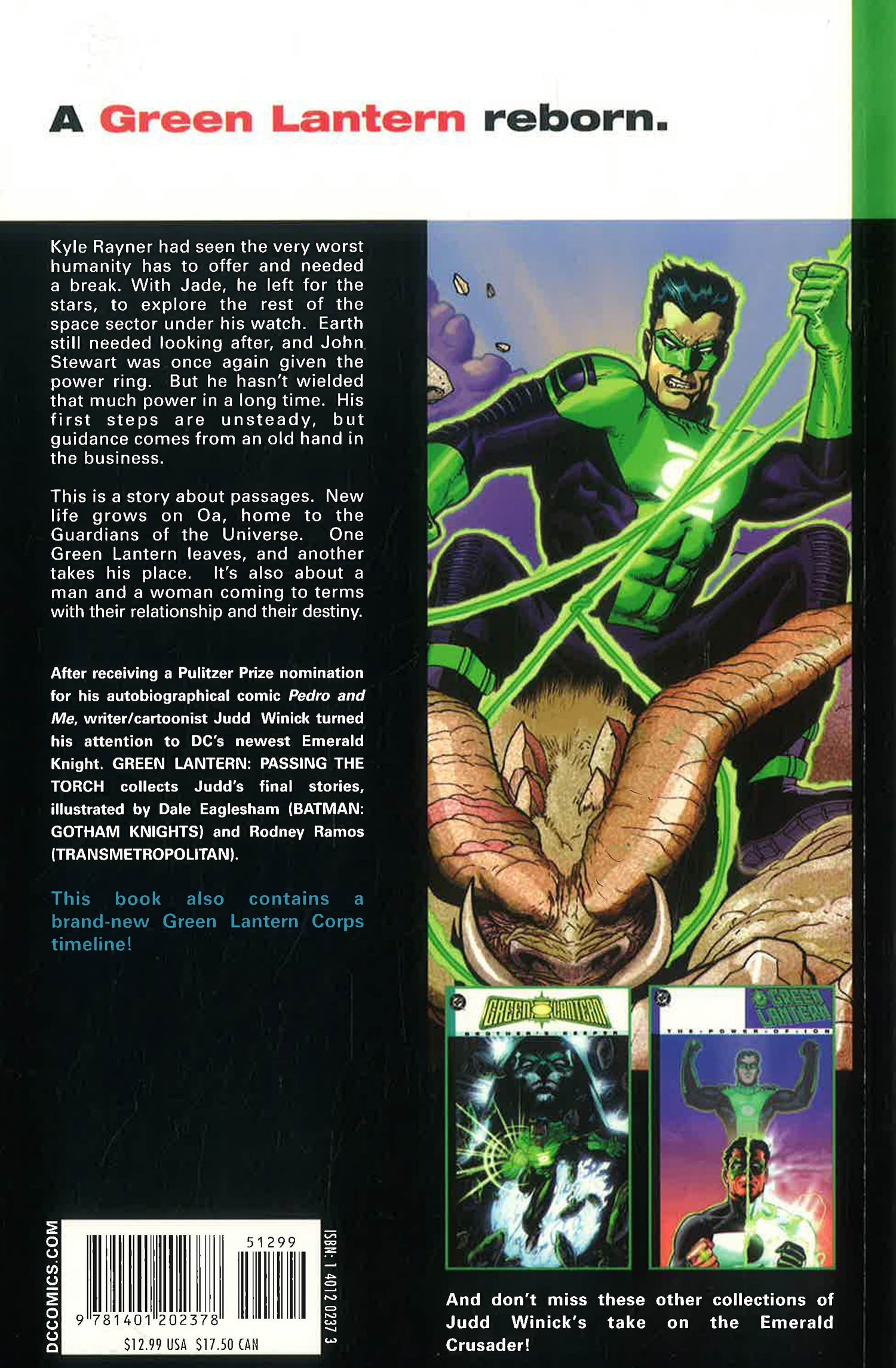 The final arc of the GREEN LANTERN run by acclaimed writer Judd Winick (GREEN ARROW, OUTSIDERS) is collected in this new trade paperback! With Jade at his side, Kyle Rayner, Green Lantern of Earth, takes to stars, where he encounters action and intrigue on Oa, home planet of the Guardians of the Universe! Collects GREEN LANTERN #156 and 158-161.