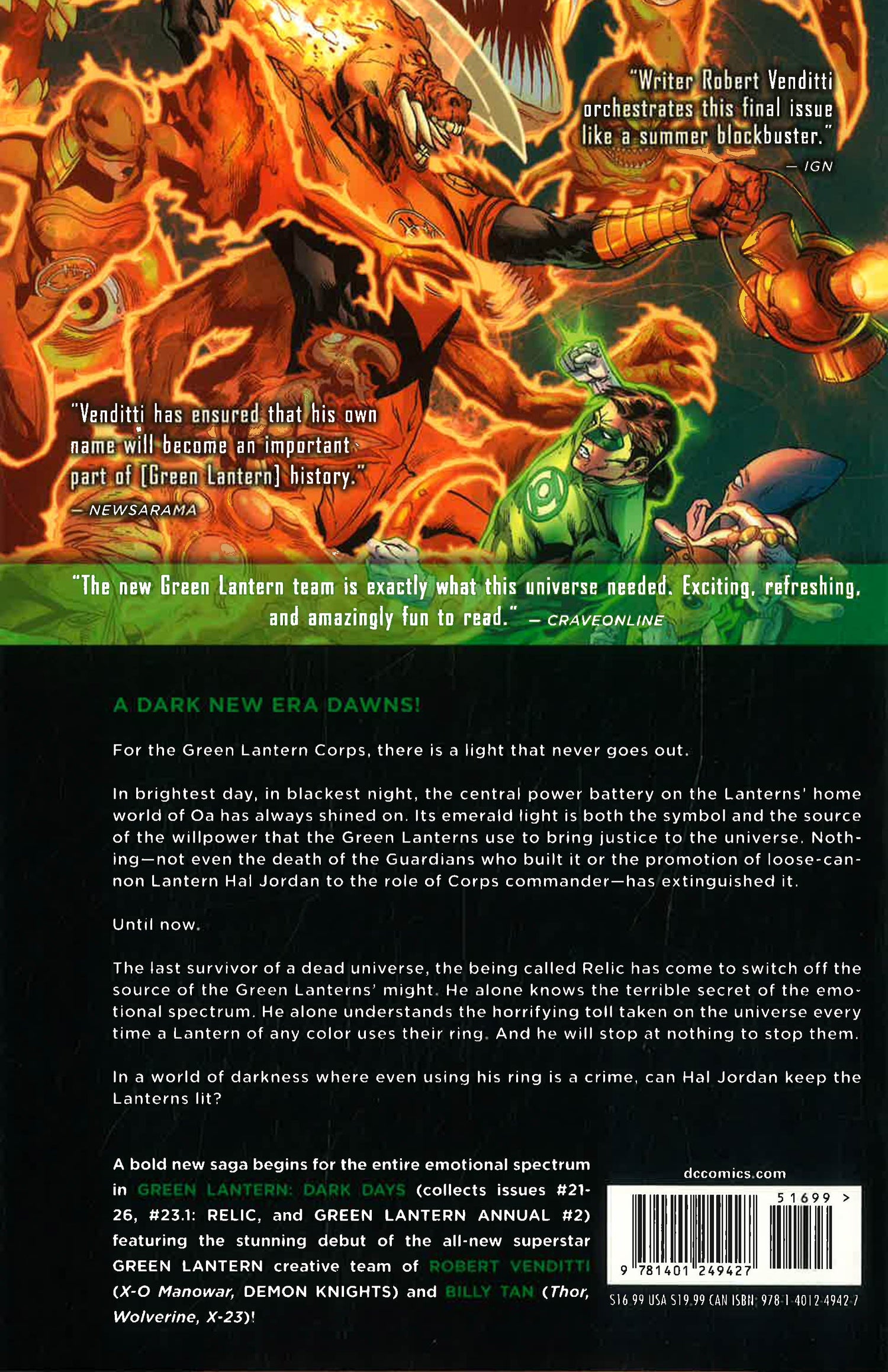 This volume collects GREEN LANTERN #21-26, #23.1: Relic, GREEN LANTERN ANNUAL #2.