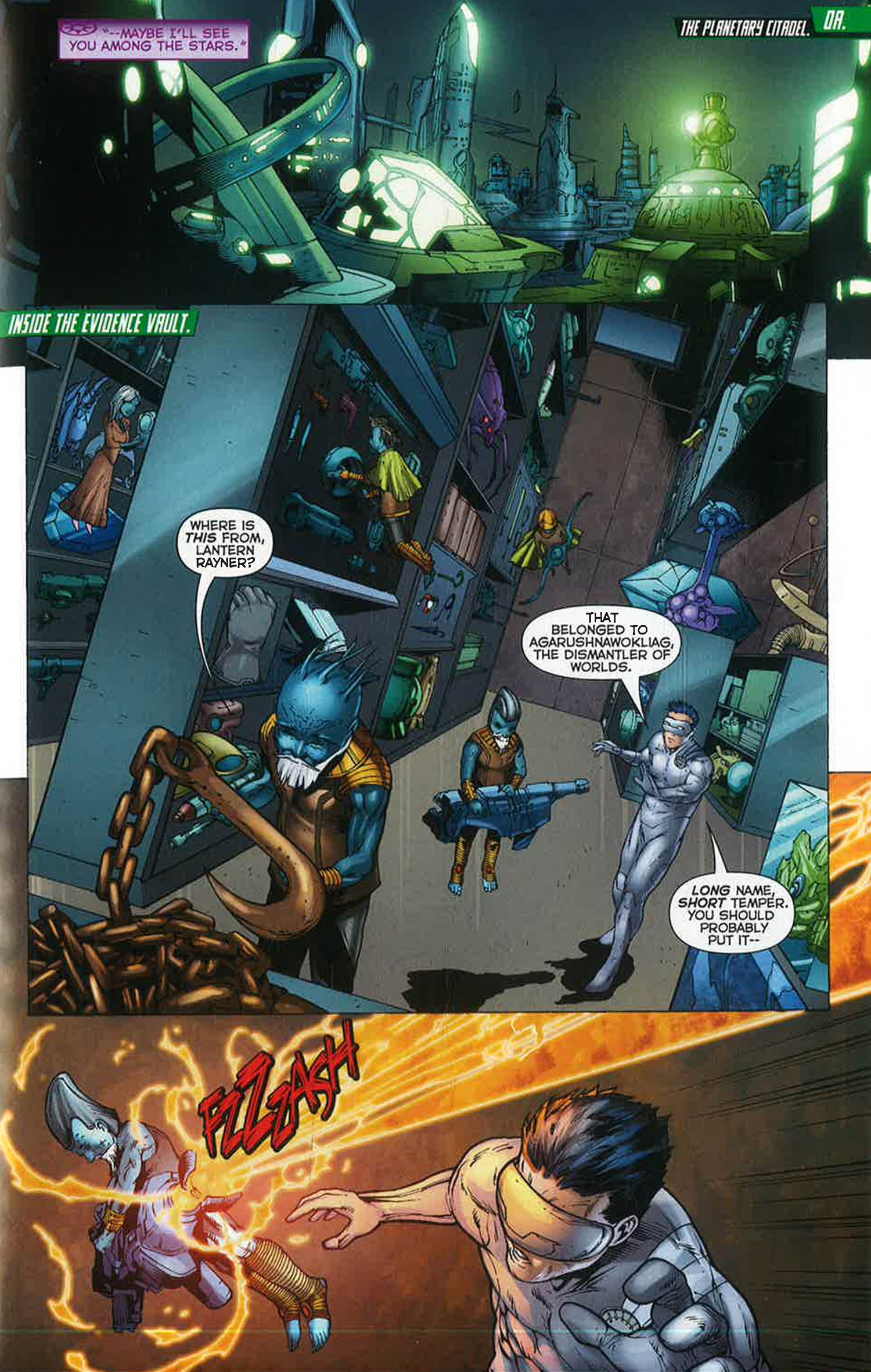Just as Hal Jordan, John Stewart and Guy Gardner are putting back together the Green Lantern Corps, lights across all of the different colored Corps begin to flicker. Lanterns from all over the universe begin to lose power, but unlike times' past, the reasons for the outage don't seem to be in-fighting between one another. Allying with enemies and friends alike, Hal links the answers to the mysterious alien Relic and their confrontations will leave all the corps forever changed.